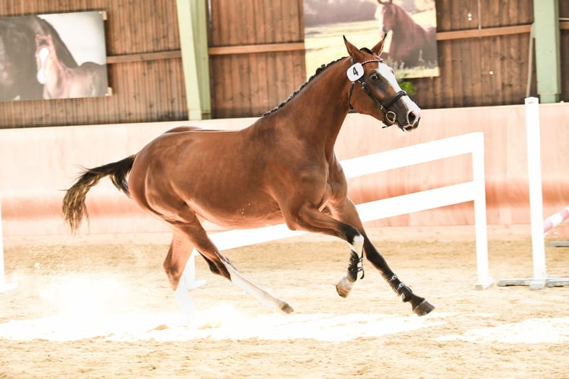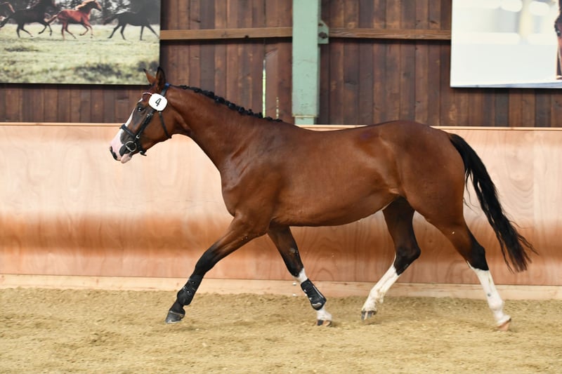 Mare, born in 2019 – Comte x Cavalier x Mister ▪️ Styrian Reserve Champion filly (show jumping focus) ▪️ Styrian Reserve Champion mare with a jumping emphasis – free jumping score of 9.0 at age 4 ▪️ Foal of "Caytens" in 2023 Fini is a striking mare with a distinctive coat color and a big heart: motivated, honest, and eager to work—whether in the arena or out on the trails. Her pedigree speaks for itself: Comte’s offspring are athletic, rideable, and performance-oriented. Cavalier (San Patrignano Mister) was an international star in show jumping. Silbersee has sired numerous Grand Prix winners. Due to mild summer eczema, she is offered at a significantly reduced price. Further details are available upon request.