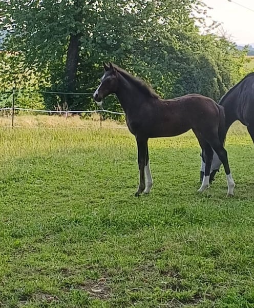 Verkaufe österreichisches Warmblut – elegante Springstute Zum Verkauf steht eine wunderschöne, dunkelbraune Warmblut-Stute, geboren im März 2025. Vater: Adzaro de LAbbaye B Mutter: Contendro I x Grannus Ihre Mutter lief selbst siegreich M Springen. Beim Fohlenchampionat bekam sie nur 8.0 Noten. Sie ist bestens geeignet für ambitionierte Reiter, die Wert auf Qualität und Charakter legen. Bei Interesse oder für weitere Informationen stehe ich gerne zur Verfügung. Ein Besichtigungstermin kann nach Vereinbarung erfolgen.