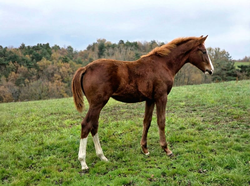 Fohlen m/w, alzanfarben, geboren am 19. April 2025, mit viel Weiß und einer natürlichen Ausstrahlung, die sofort alle Blicke auf sich zieht. Mit seinem modernen Typ, ausgeprägt im Reiten, einer sehr schönen natürlichen Balance und einer bereits beeindruckenden Bewegungsqualität für sein Alter lässt er auf ein großrahmiges Pferd (> 1,70 m) mit Substanz und echter Athleten-Aura schließen. Dieses junge Pferd vereint alle Attribute eines vielversprechenden Dressurfohlen: Eleganz, Kraft, Bewegungsumfang und ein unbestreitbares sportliches Potential. Er hat sich in diesem Jahr beim France Dressage Wettbewerb hervorgetan, den er mit fast 83 % souverän gewonnen hat. Ausgezeichnete Bewertungen sprechen für sich: Trab: 8,4 Galopp: 8,6 Schritt: 8,8 Diese Noten spiegeln seine Qualität, seine Feinfühligkeit und seine Konstanz in den drei Grundgangarten wider. Ein bemerkenswertes Wesen Im Alltag ist er: - sehr menschenbezogen, - temperamentvoll, aber ausgeglichen, - neugierig, intelligent und ausgeglichen, - liebt es, gepflegt zu werden. Aus einer familiären Zucht stammend, ist er gut im Umgang und wurde seit seiner Geburt regelmäßig: - mit hochwertigem Futter (St Hippolyt), - mit regelmäßigen Pflege- und Behandlungseinheiten, - in einer gesunden, sicheren Umgebung aufgezogen. Ein ideales Umfeld für den Aufbau einer soliden mentalen Basis und eine harmonische Entwicklung. Herkunft mit erstklassigem Dressurblut Dieser Fohlen vereint einige der begehrtesten Blutlinien Europas, sowohl väterlicher- als auch mütterlicherseits, mit zahlreichen Grand-Prix-Pferden in seinem Stammbaum. Vater: Danciano de Malleret Einer der besten Söhne von Dancier. Hannoveraner Hengst, prämiert, Top-Preis, Sieger im 30-Tage-Test, Vize-Hannover-Champion in Verden im Alter von 4 Jahren, qualifiziert für den Bundeschampionat, heute Dressur-Großpferd, regelmäßig im CDI am Start, ausgewählt für das spanische Team beim CDIO5 in Compiègne*. Ein Hengst, der für seine Eleganz, Bewegungsumfang, Ausdruckskraft und sein engagiertes Wesen bekannt ist. Mutter: Lady Gaga, KWPN Elite Stute Ehemalige Sportstute, erfolgreich im Sattel der internationalen Reiterin Margo Timmermans, für den hohen Turniersport vorgesehen, bevor sie durch eine Verletzung pausieren musste. (Videos auf Anfrage erhältlich: Piaffe, enge Wechsel, Versammlung…) Sie vereint eine außergewöhnliche Genetik: Fürstenball als Vater → Eleganz, Mechanik, Leichtigkeit im Versammeln Jazz als Großvater mütterlicherseits → Reaktionsschnelligkeit, Energie, Talent für die Dressur Scandic im Stammbaum → Widerstandskraft, Kraft, sportliche Langlebigkeit Ein außergewöhnliches Pedigree, das auf die Zucht von Grand-Prix-tauglichen Pferden ausgelegt ist. Ein Fohlen für den modernen Dressursport geboren Mit: - natürlicher, elastischer und weit ausgreifender Bewegung, - frühem Gleichgewicht, - offenem, verbundenem Geist, - genetischer Ausstattung für den Spitzensport, - harmonischem und gepflegtem Wachstum, Er erfüllt alle Kriterien eines zukünftigen Dressurpferdes für den Leistungssport, mit hohem Mehrwert für Investoren, ambitionierte Amateurreiter oder professionelle Fahrer. Warum ihn wählen? - Herausragende Qualität schon im jungen Alter - Moderner, eleganter und kraftvoller Typ - Großes Potential für den Grand Prix durch seine Blutlinien - Erfolgreich bei France Dressage (≈ 83 %) - Vielversprechendes Wesen: menschenbezogen, stabil, engagiert - Sehr gut im Umgang – gesunde und seriöse Aufzucht - Bereits jetzt beeindruckende Bewegungen - Großrahmiges, elegantes und ansprechendes Exterieur - Mehrwertsteuer rückerstattbar