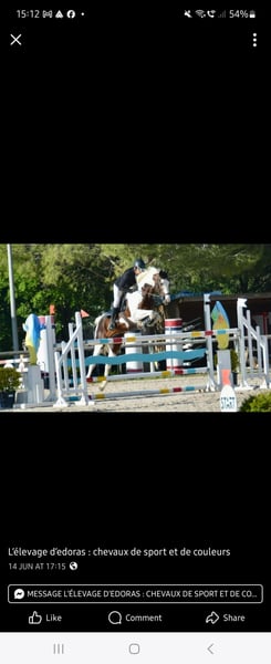 PETITPRINCE KIZOME disponible à la réservation avec tarif intéressant et échelonnement possible jusqu'au depart. Male pie hétérozygote OC inscriptible au studbook AES, Z ou possibilité SF après présentation modèles et allures à ses 2 ans 😉 PETITPRINCE KIZOME adore les câlins/caresses au champs, il est curieux et doux et aime être en contact avec l'homme. Il aime également se faire brosser dans le pré et se mène calmement en licol. Il vit en permanence au pré avec sa mère et ses compagnons avec acces au foin, de l'herbe et un aliment pour yearlings toute l'année. Il est hétérozygote donc il reproduira le gène pie 50% du temps à n'importe quel jument. Il conviendrait pour cavaliers amateurs et pro. Il sera prêt à partir pour Noël vacciné et vermifugée à jour. Par IMPERIAL D'AURICE, jeune étalon Selle Français : fils de faraquao l’évidence SF ( quebracho de semilly et breezer kwpn) et énigme des grêles SF ( wonderboy X indra des clos SF) Nous retrouvons aussi le sang de le tot de semilly (in breeding), quidam de revel, quat’sous, capitol …. Très bien noté au M&A SF à 2 et 3 ans (18/20 en saut,force et courage , 16 au modèle ). En CC 4 ans il effectue 4SF/8 parcours (iso 104) 💥Tout ses poulains qui ont été présentés au M&A sont passé SF 💥 Père de mère : ARKTOS, un des meilleur étalons de sport palomino en Pologne. Tous ses produits sont connus pour leur polyvalence et la facilité sous la selle. 🇲🇫 Bretagne, France --- 🇬🇧 English PETIT PRINCE KIZOME Beautiful piebald colt (heterozygous), french registered, eligible for AES or Z studbook registration, and potentially Selle Français upon presentation at the Selle Français model & movement inspection at 2 years old. Offered at an attractive price, with flexible payment options available until weaning. Prince is a very friendly little colt who loves cuddles and fuss. He is curious and gentle. He enjoys a good brush in the field with his friends and has learnt to be led calmly in a headcollar. He lives out 24/7 with his mum and friends with access to hay, grass + yearling feed all year around. He has a striking 50/50 distribution or white and bay patches with a black mane and tale. He is likely to pass on his stunning colouring to half of his foals should you decide to breed from him. He should measure around 165cm when he has finished growing. Will be suitable for for both experienced leisure riders and professional riders. He will be ready to go for Christmas vaccinated and wormed up to date before departure. Sire: IMPERIAL D’AURICE (Selle Français) Young, promising stallion by FARAQUAO L’ÉVIDENCE SF (Quebracho de Semilly x Breezer KWPN) and out of ÉNIGME DES GRÊLES SF (Wonderboy x Indra des Clos SF). This outstanding pedigree includes some of the best European jumping bloodlines: Le Tot de Semilly (in-breeding), Quidam de Revel, Quat’Sous, and Capitol. ⭐️ IMPERIAL D’AURICE achieved: 18/20 for jumping, power, and courage 16/20 for conformation at the Selle Français Young Horse Evaluations (2 & 3 years old) In the 4-year-old cycle, 4 clear rounds out of 8 (ISO 104) All of his offspring presented so far at the SF model & movement tests have been approved SF 💥 Dam’s Sire: ARKTOS One of Poland’s top palomino sport stallions, known for producing offspring with excellent versatility, rideability, and temperament. --- 📍 Located in Brittany, France 📆 Available now for reservation – flexible terms possible.