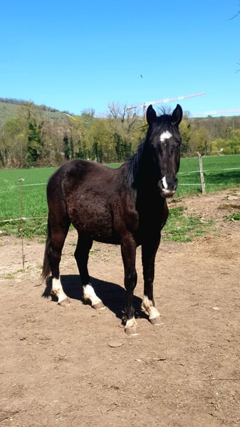 Disponible Omega de Crepinge Un poulain qui marque les esprits Certains poulains ont ce petit quelque chose en plus… Omega en fait partie. Né en mai 2024, ce mâle Selle Français par Versace (Caretino) x Valencia des Bordes séduit autant par son modèle que par son mental. Noir, avec 4 balzanes et une belle tête expressive, il ne passe pas inaperçu. Mais ce qui fait vraiment la différence chez lui, c’est son caractère. Omega est un poulain profondément gentil, proche de l’homme, avec un tempérament froid et rassurant. Il réfléchit, observe, apprend vite… et surtout, il donne confiance. Élevé en troupeau à l’année, il a grandi dans un environnement sain et équilibré. Déjà très bien dans sa tête et dans son corps : – Il donne les pieds sans difficulté – Se déplace en main avec calme – Part en balade, seul ou accompagné – Monte en van et voyage sereinement – Reste posé face à la nouveauté C’est le type de cheval que l’on imagine aussi bien évoluer en CCE ou CSO, que partager une vraie relation avec son cavalier au quotidien. Un partenaire polyvalent, fiable et attachant… le cheval qu’on garde longtemps. Très proche de l’homme, il apprécie particulièrement la présence et le contact, y compris avec les enfants. ➡️ Omega devrait rester dans un format pratique, idéal pour un large panel de cavaliers. ➡️ Raison de la vente : poulain initialement acheter avec l’objectif de le présenter à l’agrément étalon. Son développement s’orientant vers une taille plus modérée, nous faisons le choix de lui offrir une carrière sportive ou de loisir, parfaitement adaptée à ses qualités. 📍 Visible dans le Bas-Rhin, secteur Strasbourg
