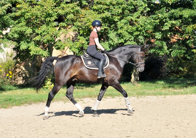 Doświadczony koń sportowy do 135 cm, z sukcesami na arenie międzynarodowej. Jest pomocny w parkurze, łatwy w prowadzeniu, bardzo zwrotny i wyposażony w przyjemny zapał, grzeczny i bezproblemowy. Sprawia radość w codziennej pracy, dobrze radzi sobie w terenie, także samodzielnie. W kontaktach jest dobrze wychowany, absolutnie bezproblemowy. Spokojny w kowalni i przy załadunku. Całkowicie zdrowy, nie ma żadnych złych nawyków, aktualny dobry przegląd weterynaryjny jest dostępny. Możliwość przetestowania pod siodłem po wcześniejszym umówieniu telefonicznym. W przypadku zainteresowania lub dodatkowych pytań, chętnie służę pomocą. Wizyty są możliwe po wcześniejszym uzgodnieniu.