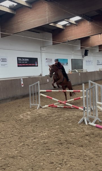 Goldfeivel ist ein treuer zuverlässiger Begleiter. Schweren Herzens suchen wir für unseren Goldfeivel ein neues Zuhause, da sich viel in unserem Leben verändert hat und nun zu wenig Zeit für ihn da ist. Goldfeivel ist besonders vielseitig! An der Longe hat mein Mann auf ihm reiten gelernt. Ich bin als Reitanfänger auf ihm geritten und unsere Tochter ist mit ihm bis A** im Turnier und im Training zum Schluss bis M Niveau gesprungen. Im Gelände hat er uns alle drei sicher begleitet. Meine Tochter ist auch allein mit ihm ausgeritten, auch mal ohne Sattel. Bodenarbeit, Longieren, frei Laufenlassen, Freispringen, Quadrille reiten, Geschicklichkeitsparcour, Ausritte machen mit ihm Freude. Er ist fein in den Hilfen und hat einen wundervollen Schwung. Goldfeivel passt auf seinen Reiter auf. Er ist unkompliziert, verladefromm und schmiedefromm, verkleidungstolerant. Er eignet sich besonders für Springreitanfänger, um Sicherheit zu bekommen und die Feinheiten zulernen.