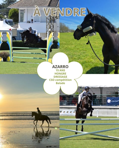 ⭐ À vendre – Azarro ⭐ C’est avec beaucoup d’émotion que je mets en vente Azarro, hongre de 15 ans, mon compagnon depuis maintenant 6 ans. Il m’a fait vivre certaines de mes plus belles expériences à cheval. Azarro est un cheval très attachant, généreux et polyvalent, qui aime donner le meilleur de lui-même dans chaque discipline. Cheval assez technique, il est propice à de nombreuses disciplines et sort en CSO en concours amateur. Je le vends aujourd’hui à contre-cœur par manque de temps. Je souhaite avant tout qu’il trouve une famille ou un cavalier qui saura l’aimer et prendre soin de lui comme il le mérite. 📩 Prix et renseignements en message privé 📞 Ou au 07 84 08 07 02