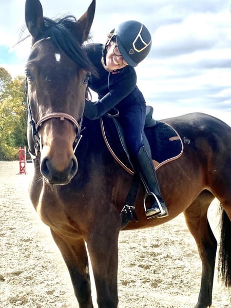 Junges Springpferd zeigt bereits schöne Qualitäten im Parcours: ehrlich, regelmäßig und engagiert im Training. Es springt derzeit mit einer guten Distanz und technischer Sauberkeit über die Hindernisse. Leicht zu handhaben, ist es brav am Boden, respektvoll und menschenbezogen. Es zeigt sich auch beim Putzen sehr ruhig, reist problemlos und ist einfach im Umgang mit dem Hufschmied. Besichtigung in Saint-Aubin-sur-Gaillon möglich. Transport kann überall organisiert werden.