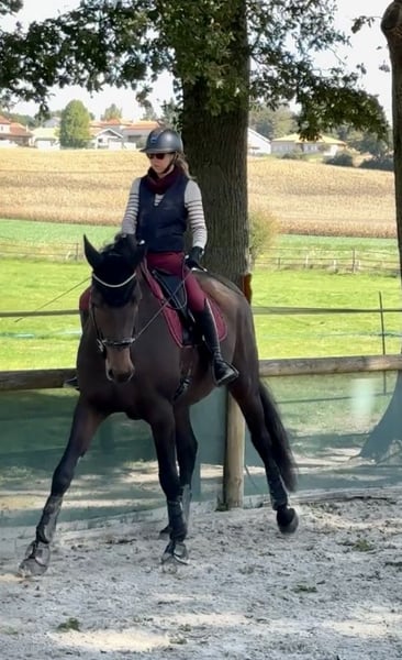 Hongre de 4 ans , grand modèle 1m78 bien dans sa tête, part seul ou accompagné en balade. Commence doucement le travail sur le plat avec de belles qualités pour le dressage. Convient pour un cavalier loisir/club ou transition club amateur, idéalement encadré. Cheval idéal pour un projet plaisir sans pression. Petit prix en raison d'une ancienne blessure bien suivie et stabilisée (compte rendu vétérinaire disponible) Visible au Haras des hurliers 01390 TRAMOYES FRANCE