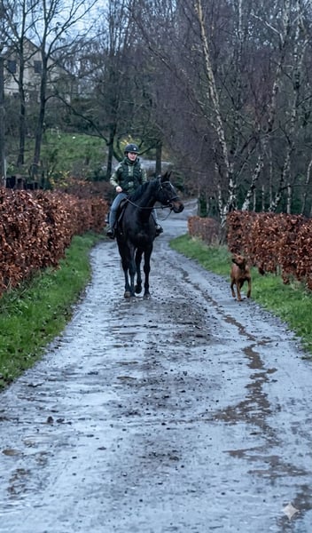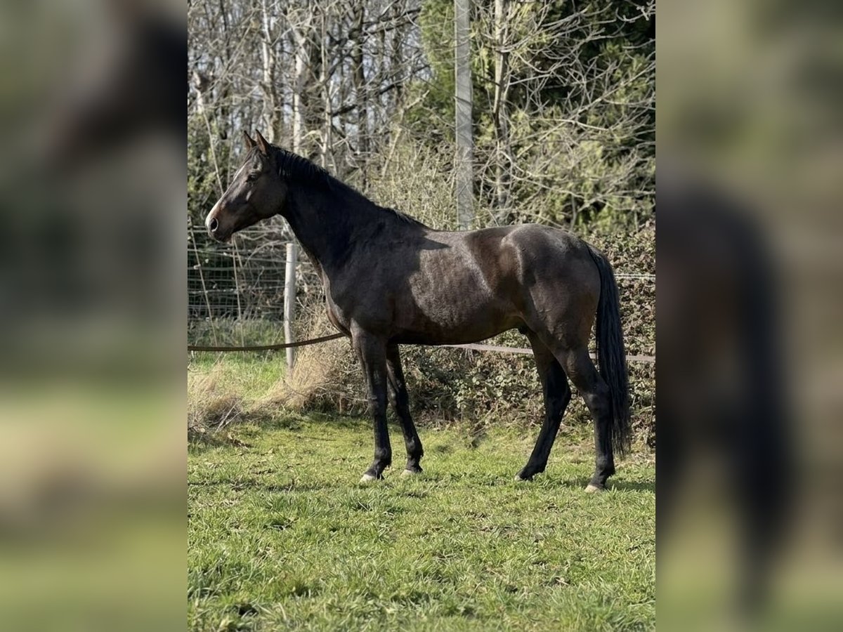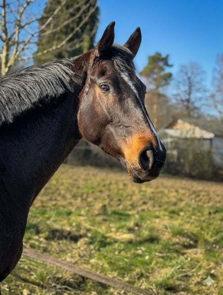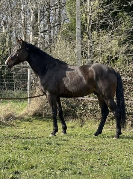 Denzel est un superbe cheval bai brûlé de 5 ans, toisant environ 1m68. Il séduit immédiatement par son modèle harmonieux et son regard doux, mais aussi par son caractère particulièrement attachant. C’est un cheval qui apprécie énormément le contact humain : il adore qu’on s’occupe de lui et se montre très agréable dans toutes les manipulations du quotidien. Aux soins, il est facile et coopératif, ce qui le rend très confortable à vivre au jour le jour. Jusqu’à présent, Denzel a été monté en extérieur. Il est extrêmement sûr aux trois allures, avec un mental posé et rassurant. C’est le genre de cheval qui met en confiance, passant partout sans hésitation. Il possède une bonne bouche, est à l’écoute et toujours volontaire. Il apprécie également les moments au pré, notamment en compagnie d’autres chevaux. Une vie au grand air, même à l’année, lui conviendrait parfaitement. Très sociable, il s’entend bien avec ses congénères, se montre respectueux des clôtures et adopte une attitude calme dans le troupeau, préférant se mettre en retrait face aux chevaux dominants. Denzel est donc un compagnon idéal pour quelqu’un à la recherche d’un cheval sûr, gentil et facile pour faire de belles balades et partager une vraie relation au quotidien. 🐴✨