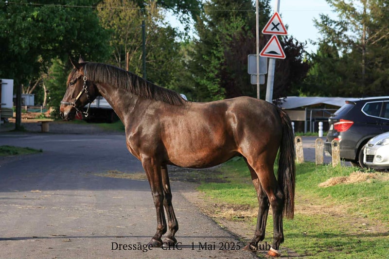 We present to you this lovely gelding with prestigious papers, combining elegance, temperament, and potential, ideal for a rider wishing to progress smoothly in dressage. Sire: Emotion de Saint Val (Selle Francais) – Champion of France at 2 and 3 years old, selected for the World Championships for Young Horses before being sold to America. He is himself a son of Don Duan de Hus, a remarkable stallion with an impressive record and known for the quality of his offspring. Dam's sire: Karamel de Lauture (Selle Francais) – Two-time vice-champion of France Pro Elite and performing internationally. He is descended from Gribaldi, an exceptional stallion who excelled at the highest level with Edward Gal and is the father of the legendary Totilas. With his elegant build and charisma, this gelding combines style and practicality. Very gentle, willing, and unfazed, he is easy to handle on a daily basis. He loads and unloads without difficulty, and he is comfortable both alone and in a group. He also jumps well. His gaits show great qualities: Walk: good engagement and nice amplitude Trot: well-paced with a regular rhythm Canter: balanced, with good projection In work, he stands out for his availability and willingness to do well, making him an excellent partner for progressing with reliability and pleasure.
