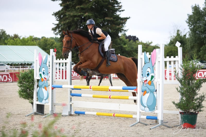 Fünfjähriger Wallach, Selle Français Fuchs mit weißen Abzeichen Er misst 1,67 m Vater: Be Express*HDC SF, Mutter: Uxane du Ricou SF (Quouglof Rouge) Erstes Jahr im Turniersport 2025: - Klassischer Zyklus für 5-Jährige - Ausbildung 2 - Freier Zyklus, 2. Jahr Er ist sehr menschenbezogen, freundlich und im Alltag unkompliziert. Er besitzt viel Kraft und einen sehr guten Rückenpass. Aktuell osteopathisch behandelt, beim Zahnarzt, alle Impfungen auf dem neuesten Stand. Zögern Sie nicht, uns für weitere Informationen zu kontaktieren.