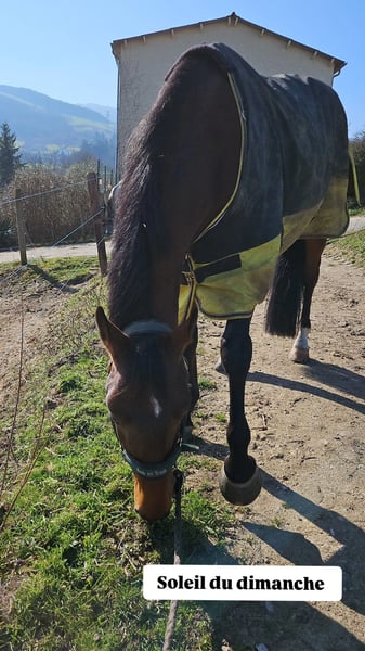 💥 AV Loire (42) ➡️ Google des Amognes ⬅️ (Vente cause reprise d'études) Selle Francais Originel 9 ans, bai, toise 1.64m. 📍Acheté à deux, mon conjoint (BPJEPS) et moi (G5) nous avons eu un coup de cœur pour ce cheval polyvalent issu d'un élevage de Qualité. 💙 Hyper tendre, et attachant il cherche les câlins en vous entourant avec son encolure, il henni quand on arrive . Hyper à l'écoute en TAP. Joli coup de saut et beaucoup de force. Saute 1M20 en parcours à la maison. En extérieur il enchaîne son tour à 1M. Sait même s'adapter tout doux sur des tours à 60CM en concours externe (pour moi) : Innarêtable. Google est un faux-froid qui sait se mettre en avant. OK Douche/Soins - OK Travail individuel - OK Cours collectifs - OK CROSS - OK VAN - OK TREC - OK balade (vigilance camion). 📌 Vit actuellement en box/paddock individuel. Ferré des 4 pieds. Radios/visite véto effectuées en Mars 2024 RAS. À jour dentaire/ostéo/vaccins. 13🥕🥕🥕 euros TTC Père: Hun de Fontenay (SFA) Mère: Jade des Mulottes (SFA) Père de mère: Pacha des Sèvres (SFA) Souche Maternelle Olympique Razzia du Poncel. Visible et essayable à Saint-Chamond (MP pour plus d'infos).— avec Maxime Vey.