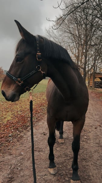 Leider muss ich meine 9-jährige Stute Gallia Dancer (Rufname Cookie) verkaufen, da sich bei ihr eine bereits mittelschwere Athrose raus gestellt hat (Fesselgelenk). Wir selber haben sie erst im September gekauft, leider war sie darauf direkt lahm. (Läuft im Schritt klar) Sie kam aus dem Springsport und hat recht gute Papiere daher kann ich sie mir auch als Zuchtstute für Hobbyzüchter vorstellen. Ich wünsche mir für sie einen endplatz wo sie einfach Pferd sein kann und lieb umsorgt wird. Im Schritt dürfte sie ab und zu geritten werden. Im Umgang ganz brav, braucht aber Vertrauen und am besten eine Bezugsperson da sie ab und zu misstrauisch und schreckhaft ist (wird aber nie böse und will immer alles richtig machen). Daher und auch aufgrund ihrer Größe (1,72) nicht für Anfänger geeignet. barhuf, brav beim Schmied (reicht alle 10 Wochen) Ihr Zubehör darf gegen Aufpreis mit umziehen Es werden nur Seriöse Anfragen beantwortet! Wir beißen nicht, nicht nur merken!
