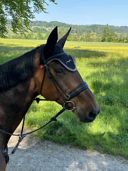 Extazy ist eine brave, ausdrucksstarke und motivierte Stute, die ihren Besitzer von ganzem Herzen liebt. Sie ist engagiert und stets bestrebt ihren Reiter glücklich zu machen. Sie ist ein ideales Amateur-/Juniorenpferd, springt einfach und gerne, ist aber auch für Dressur sehr zu begeistern. Ausreiten alleine oder in der Gruppe ist kein Problem, sie ist absolut verkehrssicher. Sie hat einen Charakter aus Gold und macht jeden Tag nur Freude. Extazy wurde regelmässig geimpft und entwurmt. Sie ist gesund, die Zähne wurden jährlich vom Tierarzt behandelt. Wir wünschen uns für Extazy einen Platz, bei welchem sie die Nummer eins sein kann. Extazy wurde regelmässig von einem Teenager geritten und gesprungen. Sie tut dies sehr pflichtbewusst. Deshalb können wir uns Extazy auch als Juniorenpferd /Lizenzpferd vorstellen. Extazy wurde bei uns bis 130 gesprungen, 120 siegreiche. Sie war mit uns im In- und Ausland auf Turnieren. Dressurmässig wurde sie von einer erfahrenen Dressurreiterin bis Niveau M ausgebildet. Da meine Tochter infolge fortgeschrittenem Studium weniger Zeit fürs Reiten hat, suchen wir für Extazy einen neuen Platz. Wir geben Extazy mit passendem Sattel weiter.