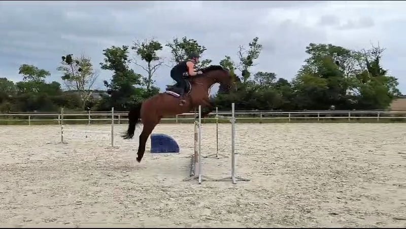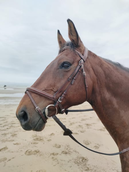 Delorean Taroy, jument SF de 13 ans, 1m65. Très beau papier ! Jument calme, de bons moyens à l’obstacle (130cm à terme), très respectueuse. Sort seule en extérieur. Idéale pour un cavalier amateur ou pour passage poney/cheval. Sort actuellement sur 105cm. Ok tonte et transport. A jour de tout : vermifuges, vaccins (TGRh), maréchal, dentiste et ostéo. Visible et essayable dans le Calvados (Normandie) Infos, vidéos et photos supplémentaires sur demande.