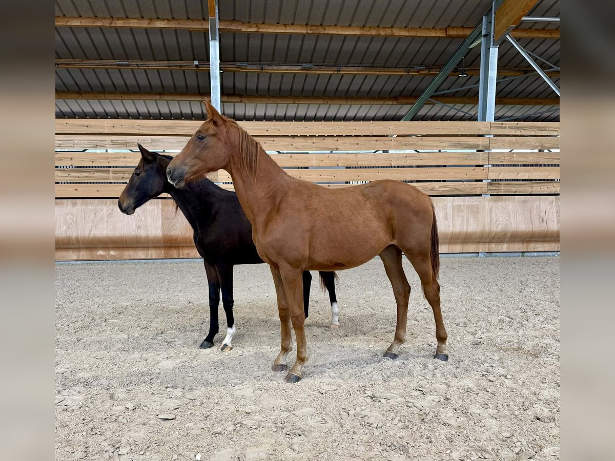 Pouliche de 2024 par Bon Cœur et Vitalis. Beaucoup de force pour cette pouliche très osseuse qui atteindra très certainement un bon 170-175cm ! Énergique et très à l’écoute, très proche de l’homme, c’est une pouliche tout en force mais d’une extrême gentillesse 🥰 Très bien manipulée, facile pour tout. 3 très belles allures avec notamment beaucoup de force dans les postérieurs au trot !