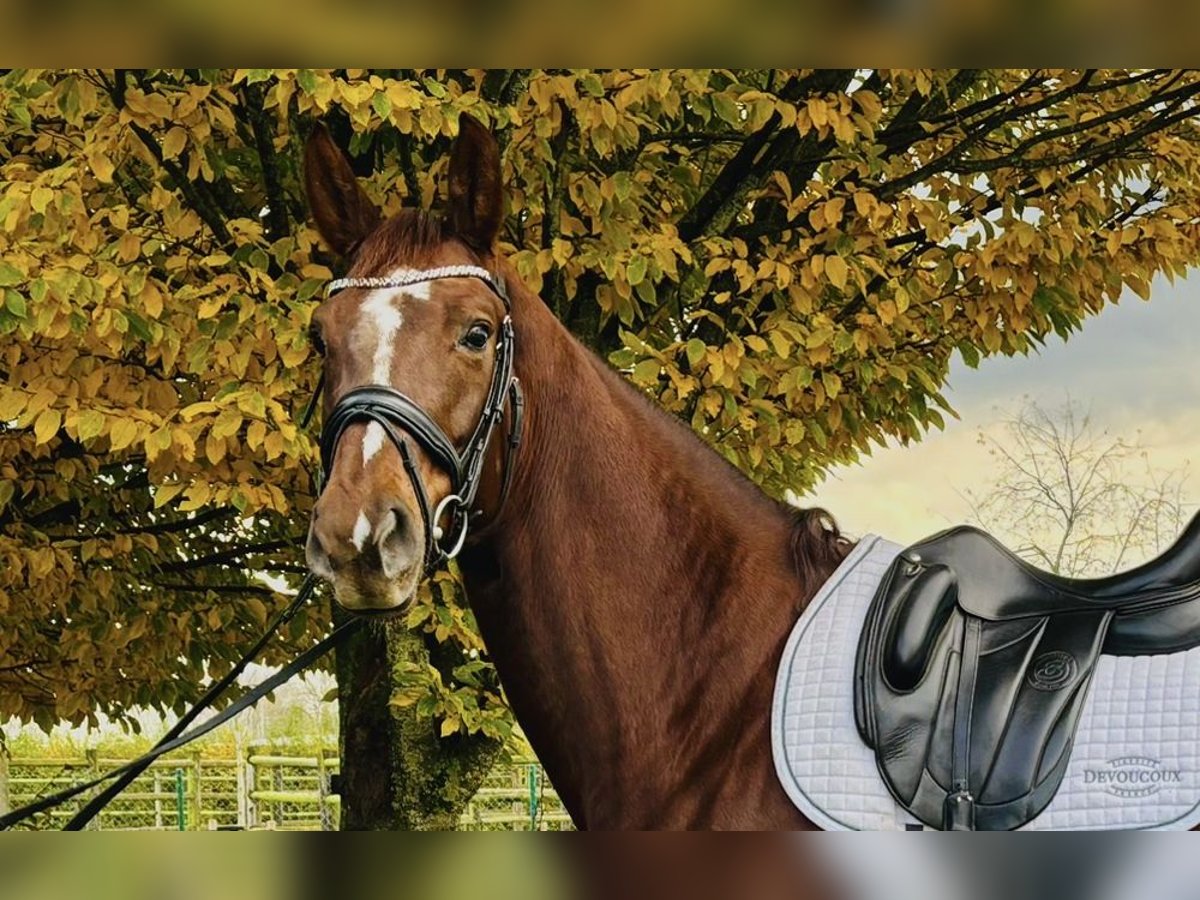 Très jolie jument alezane de 7 ans à vendre par Vitalis. Actuellement gestante par Seacrest, le poulain est prévu fin mars, la jument sera donc disponible dès le sevrage du poulain. Possibilité de remplir la jument aux frais de l'acheteur. Très gentille jument, facile au quotidien et à la manipulation, s'entend très bien avec les autres chevaux en troupeau Possibilité de le remettre en route pour du dressage, très jolis trot et très bon équilibre au galop. Very pretty 7-year-old chestnut mare by Vitalis offered for sale. She is currently in foal to Seacrest, with the foal expected at the end of March. The mare will therefore be available after weaning. It is also possible to rebreed the mare at the buyer’s expense. She is a very kind and easy mare, straightforward in daily handling, with a lovely temperament, and she gets along very well with other horses in a herd. The mare can be brought back into work for dressage; she shows a very nice trot and good balance in the canter.