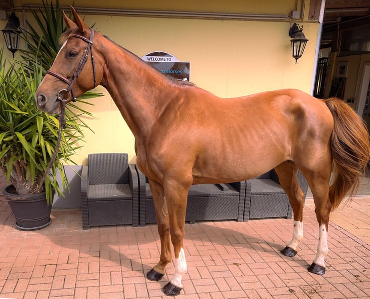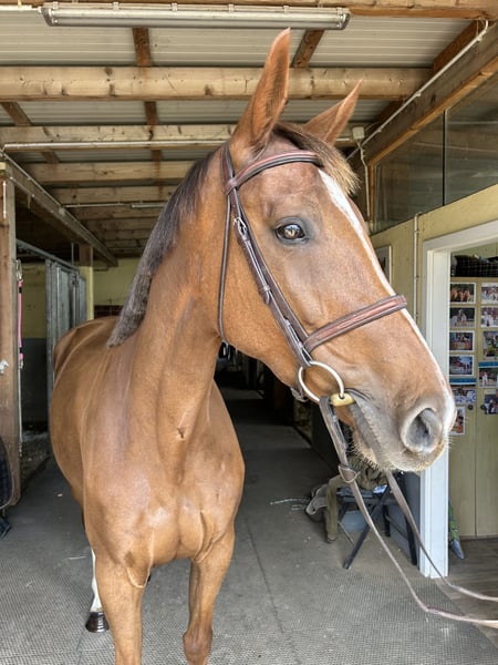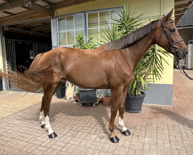 For sale is a beautiful Selle Français mare due to lack of time. This elegant and well-trained Selle Français mare was born in 2018. She is a dark chestnut with a height of 16.1 hh and impresses with her friendly temperament and elegance. This horse is ideally suited for advanced recreational riding. She has already been successfully competed in show jumping (up to 1 meter). Thanks to her versatility, she is perfect for ambitious hobby riders. She demonstrates a balanced and reliable nature, is well-trained, and has a pleasant fundamental attitude. I acquired her directly from the breeder in France at the age of 2, she had a foal with me, and was gently backed and trained. For any further information, please feel free to contact me. Viewing and trial riding are possible by appointment.