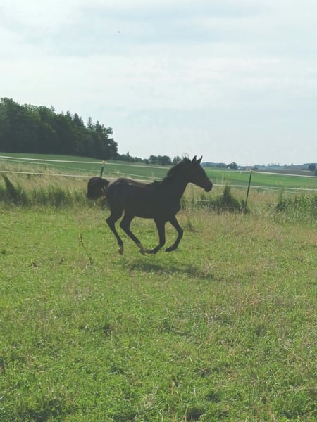 Babarello ShA est un poulain arabe shagya très actif et typé (bai) avec trois superbes allures. Il est très proche de l'homme. Babarello ShA a été primé par le ZSAA lors de la sélection des poulains et a reçu deux étoiles ! Sa mère "Babarella ShA" est une jument de prime d'association du ZSAA et a réussi son test de performance de jument avec une note globale de 7,22. Le père de Babarello est "Daru ShA", approuvé et testé en tant qu'étalon. Nous souhaitons vendre Babarello ShA en priorité pour l'élevage. Il pourrait rester encore un an chez nous pour continuer à l'élever. Il est exempt de CA et de SCID (testé). www.shagya-araber-hofstetter.de