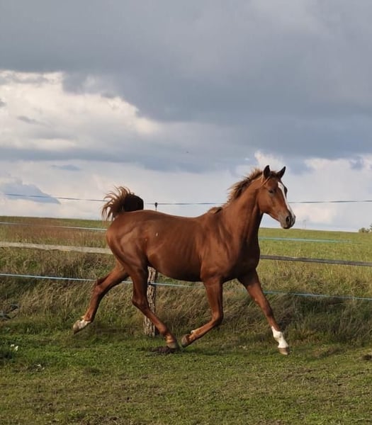 A young gelding with sporting potential, versatile in his training, accustomed to living in a herd in the pasture, vaccinated, hooves trimmed, He knows box and transport. Transport to your location is available upon request. Horses directly from the breeder, a healthy and proven breeding program near the border crossing.