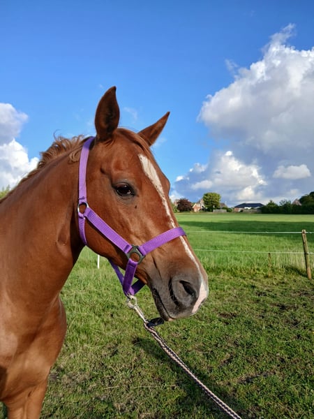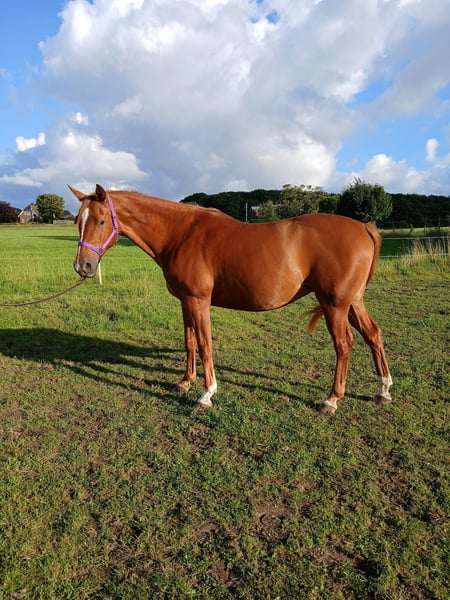 Daria est une jument très sensible qui ne sera confiée qu'à des mains très expérimentées et de la meilleure qualité. Elle a été montée pour la première fois à l'âge de 5 ans, mais n'a pas été poursuivie en raison de mes difficultés de temps. Elle a eu un poulain femelle il y a 2 ans et est enregistrée comme jument primée au VZAP. Malheureusement, elle n'est pas redevenue pleine depuis. Elle a besoin d'une personne en qui elle peut avoir confiance. C'est une jument très amicale et prudente, qui est très attachée et aime l'affection.