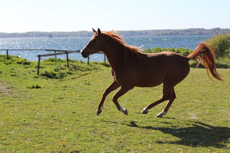 Daria ist eine hochsensible Stute, die nur in allerbeste, sehr erfahrene Hände abgegeben wird. Sie wurde 5 jährig angeritten, wurde dann aber aufgrund zeitlicher Schwierigkeiten meinerseits nicht weiter gefördert. Sie hatte ein Stutfohlen vor 2 Jahren und ist als Verbandsprämienstute beim VZAP eingetragen. Leider ist sie seitdem nicht mehr tragend geworden. Sie braucht einen Menschen zu dem sie Vertrauen haben kann. Sie ist eine sehr freundliche und vorsichtige Stute, die sehr zugewandt ist und Zuwendung liebt.
