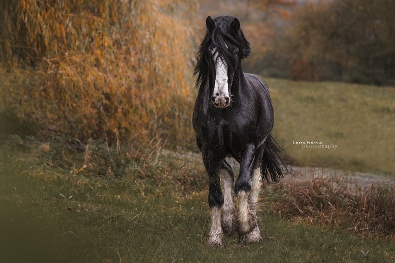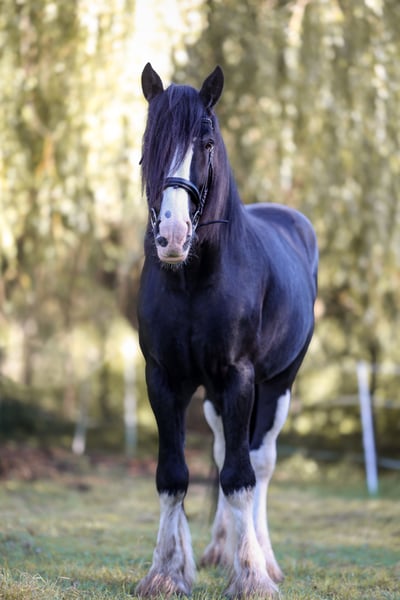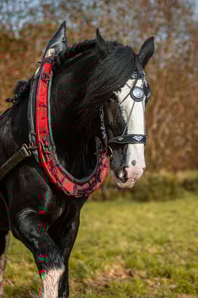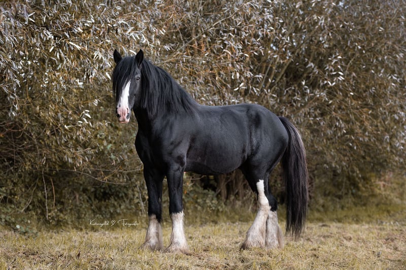 Vorgestellt für den Deckeinsatz wird der Deckhengst "Black Diamond little John" in der schönen Farbe "dark bay", 4x weiß, ohne Körperscheckung. Ein wunderschöner Hengst mit dem Stockmaß 184cm und sportlichem Exterieur. Er hat bereits erfolgreich im Natursprung und an der Hand gedeckt und sich mit 4x Weiß, guten Proportionen und seiner Langbeinigkeit weitervererbt. Er vereint in hervorragender Form die traditionellen Fähigkeiten eines Shire Horses (Zugfertigkeiten, Sanftmut) mit den modernen Anforderungen an diese Rasse (komfortable und leistungsstarke Rittigkeit). Hierfür ist insbesondere sein solides, aber leicht gebautes, sportliches Exterieur ausschlaggebend und führt zu einer leichtfüßigen Bewegung und engen Wendigkeit sowie einer ausgezeichneten Versammlung und Anlehnung beim Reiten. Charakterlich der Rasse entsprechend sanft, menschenbezogen, freundlich und auch in Stresssituationen gefestigt. Auch im Umgang mit Kindern einwandfrei. Fein in den Hilfen, sowie sehr gelehrig. In der Dressur bis L** ausgebildet, sowie geländesicher und mit zirzensischen bzw. Freiheits- Übungen und Zugarbeiten vertraut. Er ist Menschen gegenüber sehr zugewandt und ist regelmäßig für Fotoshootings (auch für Nicht-Reiter) als Tiermodell im Einsatz. Er stand immer in Gruppenhaltung, neue Vergesellschaftungen waren stets problemlos. Er erweist sich als souveränes, aufmerksames Herdenoberhaupt, liebevoller Ziehvater und weiß mit seiner Kraft behutsam umzugehen. Ebenso ist er als Hengst brav zu händeln und akzeptiert seine Grenzen. Er ist geländesicher, verladefromm, verträglich mit Tieren aller Art (Hunde, Rinder,...) und hat Showerfahrung auf der Ostseeshire Horse Show 2017 oder als Rassevertreter auf der Equitaner open Air 2018 gesammelt. Gut sozialisiert, vollständig geimpft und ohne gesundheitliche Mängel. Kein Ekzemer. Keine Hufmängel. Keine Koliken. Solide, belastbare Gelenke, noch nie lahm. Letzte Gesamtuntersuchung 2024 ohne Mängel. Die Körung erfolgte 2020 beim bayrischen Zuchtverband für Kleinpferde- und Spezialrassen e.V., womit die Fohlen vollumfängliche Papiere in Deutschland erhalten. Ebenfals erfolgte 2024 die Anerkennung als Zuchthengst bei der australian Shirehorse Society. Aufgrund des sportlich-schlanken Exterieurs wäre er allerdings auch hervorragend für die Einzucht in Warmblutrassen geeignet. Decken im Natursprung vor Ort nach vorheriger Absprache und Planung je nach Distanz möglich. Europaweiter Tiefgefriersperma (TG) Versand über die Hengststation Steinsberg (link: https://www.hengste-steinsberg.de/black-diamond-little-john/). weitere Informationen unter der Homepage: https://shirehorse-deckhengst.beepworld.de/ The stud stallion ‘Black Diamond Little John’ is presented for breeding. He has a beautiful dark bay coat, 4 white markings and no body markings. A gorgeous stallion with a height of 184 cm and a sporty exterior. He has already successfully covered mares naturally and by hand and has passed on his 4x white, good proportions and long legs to his offspring. He combines the traditional abilities of a Shire horse (pulling skills, gentleness) with the modern requirements of this breed (comfortable and powerful rideability) in an outstanding way. His solid but lightly built, athletic conformation is particularly decisive in this respect and results in light-footed movement and close manoeuvrability as well as excellent collection and contact when riding. In terms of character, he is gentle, people-oriented and friendly, as is typical of the breed, and remains calm even in stressful situations. He is also excellent with children. He responds well to aids and is very teachable. He is trained in dressage up to L** level, is sure-footed in the countryside and is familiar with circus and liberty exercises and pulling work. He is very people-oriented and is regularly used as an animal model for photo shoots (even for non-riders). He has always been kept in groups and has never had any problems socialising with new horses. He is a confident, attentive herd leader and a loving foster father, and knows how to use his strength gently. He is also well-behaved as a stallion.
