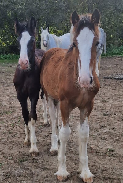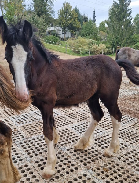 Thank you for your interest in our Shire Horse colt Magnus. Magnus was born in the summer of 2023 and will soon be able to move into a species-appropriate, new home with horse company. He grew up in a herd and spends a lot of time with his playmates every day. Magnus is a bright and cheeky stallion who likes to test his limits, but is never angry. However, we would like him to have a new home with horse experience, as Magnus will undoubtedly be an impressive representative of his breed. He already shows beautiful gaits and a lot of temperament and eagerness. We are convinced that – with adequate support – he will become a fantastically beautiful riding/leisure horse. Of course, there are still a few years to go until a riding horse (). It is decidedly curious, playful and courageous. He is already very independent and makes his excursions on the extensive pastures out of sight of his mother. He only visits her from time to time to drink, otherwise he prefers to play with his foal friends. According to his age, Magnus is either super well-behaved at the farrier or a bit annoying, the hoofing is diligently practiced together with the usual foal ABC Since he was born on our farm and there were no (medical) requirements to transport him so far, it was not yet necessary to drive with the trailer. Of course, this could be practiced accordingly. If you are interested, we look forward to hearing from you for Magnus.
