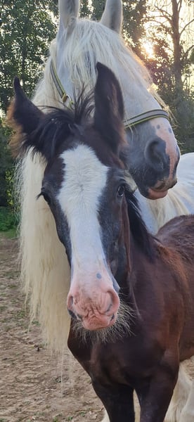 Vielen Dank für das Interesse an unserem Shire Horse Wallach Jungpferd Magnus. Magnus ist im Sommer 2023 geboren und darf bald in ein artgerechtes, neues Zuhause mit Pferdegesellschaft ziehen. Er ist im Herdenverband aufgewachsen und verbringt täglich viel Zeit mit seinen SpielgefährtInnen. Magnus ist ein aufgeweckter und frecher Hengst der aktuell gern seine Grenzen testet, dabei aber niemals böse ist. Allerdings wünschen wir uns für ihn ein neues Zuhause mit Pferdeerfahrung, wird Magnus doch zweifellos ein imposanter Vertreter seiner Rasse. Bereits jetzt zeigt er wunderschöne Gänge und viel Temperament und Eifer. Wir sind davon überzeugt, dass er – bei adäquater Förderung – ein traumhaft schönes Reit-/Freizeitpferd wird. Bis zum Reitpferd sind es natürlich noch ein paar Jahre hin (). Es ist ausgesprochen neugierig , verspielt und mutig. Bereits jetzt ist er sehr selbständig und macht seine Ausflüge auf den weitläufigen Weiden außer Sichtweite von seiner Mama. Nur zum Trinken stattet er ihr ab und zu einen Besuch ab, ansonsten spielt er viel lieber mit seinen Fohlenfreunden. Magnus ist altersentsprechend entweder superbrav beim Hufschmied oder etwas lästig, das Hufegeben wird gemeinsam mit dem üblichen Fohlen-ABC fleißig geübt Nachdem er auf unserem Hof geboren ist und es bislang keine (medizinischen) Erfordernisse gab ihn zu transportieren, war es bislang noch nicht notwendig mit dem Anhänger zu fahren. Dies könnte aber selbstverständlich entsprechend geübt werden. Bei näherem Interesse freuen wir uns über eine Nachricht für Magnus.