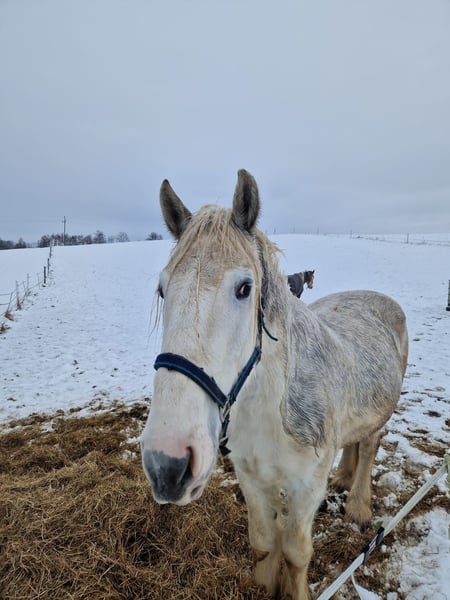 Poszukujesz wyjątkowego konia o imponującym wyglądzie i charakterze? Uwaga: nasz przytulny ogier rasy Shire Horse, Nepomuk, szuka nowego wymarzonego domu. Nepomuk urodził się w sierpniu 2020 roku i pochodzi z naszej własnej hodowli. Obecnie ma około 1,75 m wzrostu, ale prawdopodobnie jeszcze urośnie o kilka centymetrów. Od urodzenia jest pod naszą opieką i jest gotowy na nowy etap życia w domu kochających ludzi, którzy chcą go odpowiednio wspierać i spędzać czas z czułym koniem. Niestety, w ubiegłym roku Nepomuk po raz pierwszy wykazał objawy sezonowego ekzemu, które można skutecznie kontrolować poprzez odpowiednie okrywanie i pielęgnację. Z tego powodu oferujemy go znacznie poniżej wartości rynkowej – zamiast 11 000 €, cena wynosi teraz 5 900 €. Szukamy dla niego domu u osób gotowych na włożenie dodatkowej pracy w pielęgnację, szczególnie regularne okrywanie, aby móc cieszyć się wiernym, uczciwym i wspaniałym ogierem rasy Shire Horse. Nepomuk dorastał do początku swojej kariery jeździeckiej w grupie koni w stajni otwartej, razem z innymi końmi różnego wieku. Obecnie spędza urlop na rozległej letniej pastwisku w Górnej Austrii, ciesząc się czasem wśród innych klaczy i ogierów. Wykazuje się bardzo spokojnym i towarzyskim zachowaniem wobec innych koni, dobrze dogaduje się także z naszymi ogierami. Uważamy go za konia „w pełni społecznie kompatybilnego”. Niedawno rozpoczęliśmy jego szkolenie. Nepomuk jest zmotywowany, przyjazny i towarzyski – prawdziwy „wzorowy uczeń”, który sprawia radość i daje dużo satysfakcji. Ze względu na jego wiek jesteśmy na początku jego edukacji – konie rasy Shire rosną aż do około 8. roku życia, dlatego podchodzimy do szkolenia z dużą ostrożnością i delikatnością. Nepomuk jest łatwy w obsłudze i przyjazny zarówno od strony ziemi, jak i podczas jazdy. Obecnie chętnie testuje i pyta, co jest naturalne i nie wynika z nieposłuszeństwa, dlatego chcielibyśmy powierzyć go bardziej doświadczonym opiekunom, aby jego przyjaźń z ludźmi i z innymi końmi trwała jak najdłużej. Jako koń do jazdy Nepomuk jest jeszcze na początku swojej drogi szkoleniowej. Zna już jeźdźca na grzbiecie i był także używany jako koń do towarzystwa w terenie, co sprawia mu dużą radość. Przy odpowiedniej opiece i wsparciu z pewnością można z nim osiągnąć jeszcze wiele. Nepomuk posiada pełną dokumentację od English Shire Horse Society. Oczywiście, jest regularnie szczepiony, odrobaczany i prezentowany u kowala, zawsze zachowując spokój i dobre maniery. Obecnie chodzi na gołym kopycie i radzi sobie świetnie. Nie stanowi też problemu przewóz w przyczepie. Nasze konie oddajemy wyłącznie w najlepsze ręce i do domu odpowiedniego do ich wieku, dlatego zależy nam na tym, aby poświęcić czas na poznanie potencjalnych opiekunów. Uważamy, że to także musi być wzajemna chemia – koń musi czuć się dobrze w nowym domu. Chętnie umówimy się na spotkanie z Nepomukiem. Obecnie przebywa na „letnim wypoczynku”, więc przy zainteresowaniu chętnie ustalimy termin, aby spotkanie przebiegło spokojnie i bez stresu. Po umówieniu się podamy również dokładną lokalizację. Jeśli jesteś zainteresowany, prosimy o krótkie opisanie przyszłego domu, bo dla nas najważniejsze jest dobro konia. Więcej zdjęć i informacji o naszych koniach można znaleźć na naszym kanale WhatsApp – chętnie wyślemy link. Z niecierpliwością czekamy na wiadomość w sprawie Nepomuka.