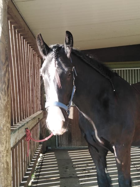 Pferd für Schau, Frei - und Bodenarbeit zu Verkaufen. Shire Horse Wallach, 6 Jahre alt ca. 183 cm groß. Am Boden toll gearbeitet. Nicht geritten und gefahren. Da er eine geringgradige Herzklappen insuffizienz hat ist er für schwere Arbeit nicht geeignet. Er ist bildschön,intelligent,sensibel,aufmerksam und sehr Menschenbezogen. Er steht mit seinem Kumpel im Offenstall mit großer Laufbox und ist der Ranghöhere von beiden. Da er diesen Befund hat, wird er nicht als Reit und Fahrpferd angeboten. Ich suche ein dauerhaftes zu Hause mit Erfahrung. Bitte keine Händler, Schlachter, Anfänger oder Leute die günstig ein schönes Pferd kaufen wollen. So ein Pferd braucht Platz, ist Pflege intensiv und kostet Geld. Er hat volle englische Papiere. Bei ernsthaften Interesse bitte NUR Telefonisch melden 01722089055. 4500VB Platz vor Preis