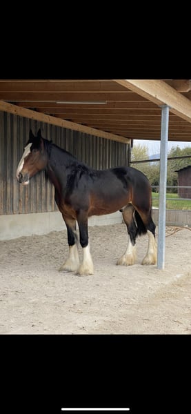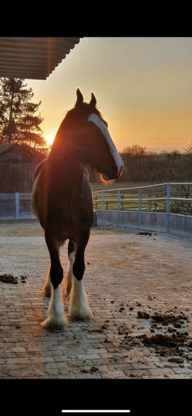 Impressive Shire Horse Gelding for Sale Due to unforeseen personal circumstances, I am heartbroken to sell my beloved horse, “Sam Smith.” Born in 2018, he stands at 1.90 meters at the withers, making him an imposing representative of his breed. Sam has so far only been worked from the ground. He enjoys free lunging, double longeing, and hacking out. He has not yet been ridden but is familiar with a saddle on his back. Sam wants to please his handler during work and thrives on varied activities. Due to his age and my personal situation, he has been minimally exercised recently. As a result, he is currently testing his handler’s confidence again. Therefore, I am only offering him to experienced horse people. Sam is healthy, well-groomed, and in excellent condition. His impressive appearance makes him a real eye-catcher and ideal for those seeking a reliable and majestic leisure horse with some work. If you are interested or would like more information, please feel free to contact me. I would be happy to arrange a meeting. I look forward to hearing from you!