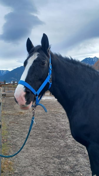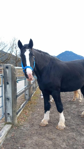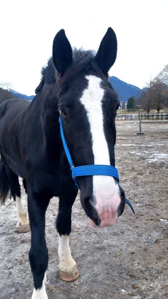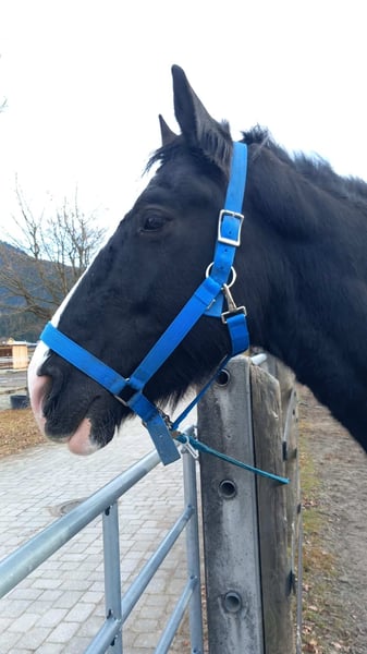 Die bildschöne, 10-jährige Shire-Horse-Stute Sapphire (Stockmaß: 191 cm) fand im Sommer den Weg zu uns in die Pferdeklappe. In den vergangenen Monaten konnte sich die sanfte Riesin gut bei uns einleben und ist nun bereit für ihr „Für-immer-Zuhause“. Sapphire ist eine sehr sanfte, menschenbezogene Stute, die mit ihrer stattlichen Erscheinung und ihrem außergewöhnlich lieben Wesen sofort die Herzen berührt. Sie ist überaus feinfühlig, zeigt sich meist ruhig und gelassen, kann manchmal aber auch ein wenig dickköpfig sein. Sapphire schätzt klare Strukturen, liebt lange Spaziergänge und ist auch bei der Bodenarbeit immer mit Eifer bei der Sache. Auch unterm Sattel ist die liebe Stute überaus brav und fein und möchte einfach nur gefallen. Was Sapphire nicht so gern mag, ist, am Kopf angefasst zu werden; auch das Aufzäumen fällt ihr nicht immer leicht, weshalb ein einfühlsamer Umgang besonders wichtig ist. Aufgrund vorhandener Knorpelverknöcherungen und Arthrose benötigt Sapphire regelmäßige Bewegung sowie gezielten Muskelaufbau. Sie ist derzeit beschwerdefrei und hat keinerlei Schmerzen. Rassebedingt hat sie leider immer wieder mit Mauke zu kämpfen, die eine konsequente Pflege mit regelmäßiger Behandlung erfordert. In den warmen Monaten kämpft Sapphire mit einem Sommerekzem, daher wäre ein höher gelegener Stall ohne stehendes Gewässer und ohne Obstbäume ideal. Sapphire ist vollständig geimpft und gechippt und wünscht sich in ihrem neuen Zuhause einen Offenstall oder eine Nachtbox mit täglichem Weidegang. Sie fühlt sich in der Herde wohl und ist mit Stuten sowie Wallachen verträglich.