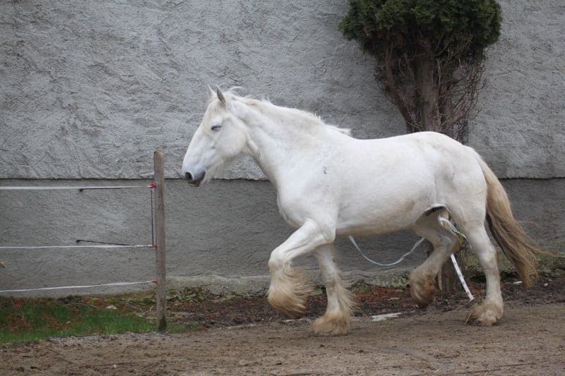 Dziękujemy za zainteresowanie naszą klaczą Shire Horse Saffron. Saffron urodziła się w 2013 roku i posiada pełne papiery od English Shire Horse Society. Saffron ma wszystkie wspaniałe cechy rasy Shire Horse. Pod względem charakteru jest to klacz zorientowana na ludzi, chętna do pracy, na której można polegać. Saffron została przez nas zakupiona jako klacz hodowlana. Niestety, gdy przyjechała, odkryliśmy, że ma pierzenie, które było łatwe do wyleczenia, ale wciąż uporczywe. Ponieważ nie zostało jeszcze naukowo udowodnione, czy mastitis lub predyspozycje do niego są dziedziczne, zdecydowaliśmy się nie używać jej do hodowli. Jako hodowcy uważamy, że naszym obowiązkiem jest nie podejmować żadnego ryzyka - w stosunku do zwierzęcia. Zamiast tego Saffron jest obecnie przez nas dosiadana i okazuje się być niezawodnym, zmotywowanym i uroczym koniem wierzchowym. Z pewnością będzie również świetnym koniem do jazdy konnej. Saffron jest częścią mieszanego stada i okazuje się być kompatybilna ze stadem i towarzyska. Jest również zaznajomiona z boksami, choć o wiele bardziej komfortowo czuje się w boksie na padoku lub w otwartej stajni. Jest towarzyska i łatwa w obsłudze, ale nalega na pochwały, gdy zrobi coś dobrego. Ze względu na linienie Saffron jest sprzedawana znacznie poniżej swojej wartości. Jednak przy odpowiedniej opiece (nie jest to zbyt skomplikowane, ale przyszli właściciele otrzymają oczywiście szczegółowe instrukcje) i regularnych ćwiczeniach można to utrzymać pod kontrolą. Postanowiliśmy poszukać dla Saffron miejsca u osób, które są gotowe poświęcić jej kilka dodatkowych sesji pielęgnacyjnych, by w zamian otrzymać naprawdę wspaniałą i wdzięczną klacz rasy Shire Horse. Weterynarz i jazda z przyczepą nie stanowią dla Saffron żadnego problemu. W tej chwili nie przepada za kowalem, ale codziennie pilnie ćwiczymy, aby zbudować jej pewność siebie i Saffron robi duże postępy. Jest oczywiście regularnie szczepiona i odrobaczana. Jeśli jesteś zainteresowany, możesz nas poznać w dowolnym momencie, najlepiej skontaktować się z nami przez Whatsapp, aby uzyskać więcej informacji. Nasze zwierzęta trafiają tylko w najlepsze ręce i do domu dostosowanego do wieku, dlatego ważne jest dla nas, aby poświęcić wystarczająco dużo czasu zainteresowanym stronom. Ważne jest dla nas również, aby koń miał wpływ na decyzję, ponieważ chemia musi być również odpowiednia dla naszych zwierząt. Z przyjemnością zorganizujemy niezobowiązujące wprowadzenie do Saffron jako "Dzień lub Weekend Konia Shire" na naszej farmie, abyśmy mogli poznać się nawzajem w spokoju i bez stresu. Zakwaterowanie jest dostępne w odległości spaceru od naszej farmy. Nasi pozostali podopieczni również chętnie przyjmują gości. Czekamy na wiadomość dla Saffron.