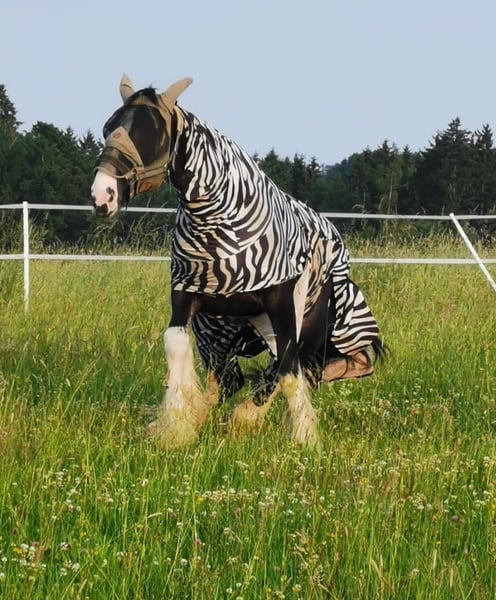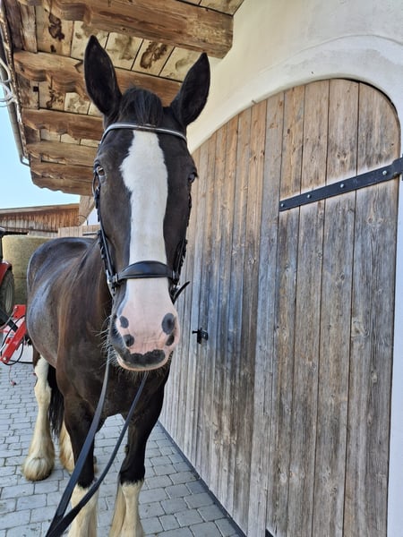 In this way, one of our most wonderful riding horses is looking for her new dream home. Stella has reliably accompanied many of our rides. She also provides a completely safe feeling for beginner riders, whether in the arena or in the field. Additionally, we can absolutely imagine her as a therapy horse. In recent months, it has become clear that Stella is not happy in a paddock setup in the long term. Although she is very compatible with other horses and enjoys grooming, she simply wants her own space where she can eat undisturbed and relax. We have therefore decided to look for a permanent home for Stella with people who can offer her a (paddock) box combined with plenty of time and love. In return, you will have a wonderful teacher and reliable partner in Stella. Unfortunately, Stella has had summer eczema for the past three years and therefore needs to be blanketed during the summer months. She would bring her favorite blanket with her. We have decided to seek a home with people who are willing to invest a little extra care (especially blanketing in summer) in exchange for a truly wonderful and grateful Shire Horse mare. Stella has full papers from the English Shire Horse Society. Stella is currently shod in front as we often ride her in rocky terrain. She is well-behaved and sweet with the farrier. Loading into a trailer is also no problem for Stella, whether alone or with company. Our animals are only placed in the best hands and an age-appropriate home, so it is important for us to take enough time for interested parties. It is also important to us that the horse has a say in the decision, as the chemistry must also be right for our animals. Since it is particularly important for us to find a nice home for Stella, the price is negotiable. Space takes precedence over price; therefore, we look forward to a description of the planned home. Stella is located near Bad Füssing, and we will gladly provide the exact address after making an appointment. Further impressions of our horses can also be found on our WhatsApp channel. If interested, we would be happy to send the link. We look forward to hearing from you regarding Stella.