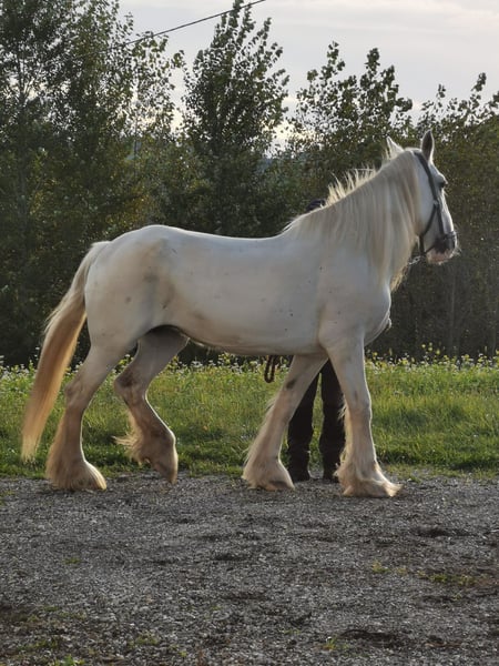✨ Shire Merrie – perfect for leisure and enjoyment ✨ For sale is an impressive Shire mare, born in 2009. This elegant grey mare impresses with her imposing appearance, her presence, and her gentle nature. With a height of 169 cm, she is a real eye-catcher and a wonderful horse for leisure riding. In handling, she is friendly and attentive, but she needs time to build trust. She can be somewhat nervous at times, reacts sensitively to changes, and feels most comfortable when she has a consistent handler she trusts. With a calm, firm, and loving approach, she quickly forms a close bond and then shows her true, warm personality. In the right environment, she is a loyal and eager learner horse that brings her owner much joy. Therefore, she is especially suitable for experienced horse people who appreciate a sensitive and refined Shire. Due to her character and sensitivity, she is being offered at a significantly reduced price—instead of €5,900, now €1,900. This price reduction aims to ensure she finds a home where she receives time, calm, and affection to build trust and settle in. With patience, routine, and a stable place in a small, harmonious environment, she can become a wonderful leisure partner and loyal companion. 📍 Viewings and trial rides are available by appointment at any time. If interested, we are happy to provide more information and current photos.