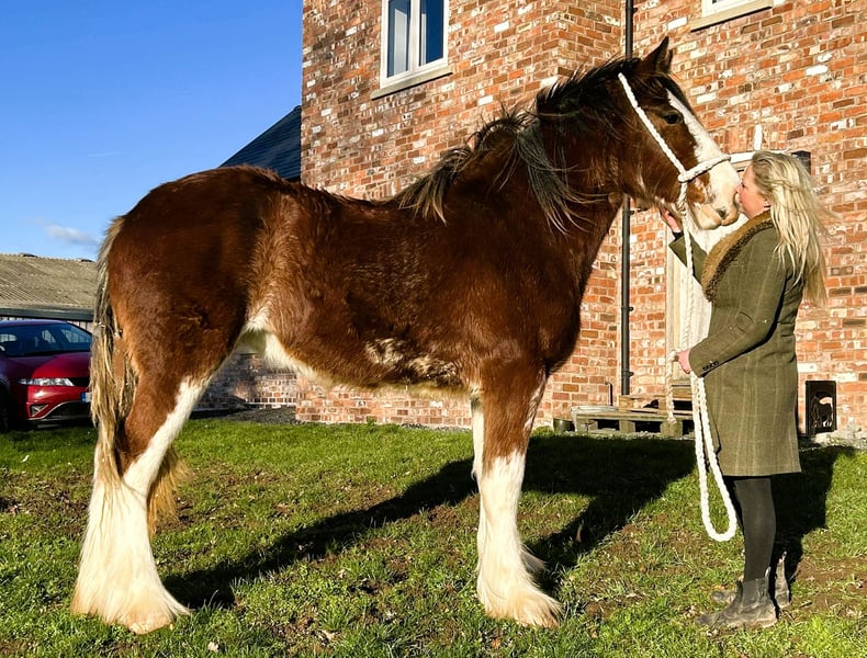 ONLY serious enquiries please for this top class Shire Filly. This beautiful filly is one of the best bred fillies anywhere and is super show quality. She has some of the most fantastic horses in her bloodline. She would make a gorgeous riding or driving mare or be a wonderful brood mare of the future for a breeding programme. sheila@shiresandclydesdales.com 0044 1606 883869