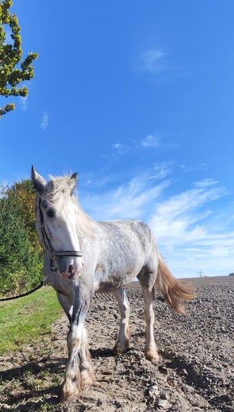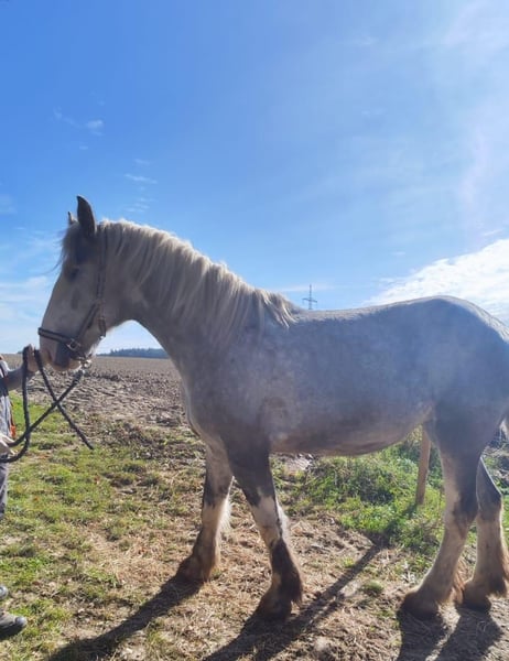 Elegant Shire Horse mare for sale – perfect for leisure and hobby riding! This impressive grey mare was born in 2022 and stands at a height of 17.7 hands. She is a true highlight for horse enthusiasts seeking a calm and friendly partner. The Shire Horse mare is renowned for her serenity and balanced temperament, making her a reliable companion for recreational riding. The horse is healthy, regularly vaccinated, and well cared for. She is human-oriented and friendly in handling. If you are interested or have any questions, please feel free to contact me. I would be happy to arrange a viewing and a test ride! I look forward to hearing from you!