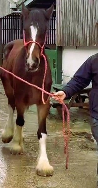 This attractive four year old mare is in foal for this time. A nice looking well marked mare with four white legs. In lovely condition. Fully registered with The Shire Horse Society UK sheila@shiresandclydesdales.com