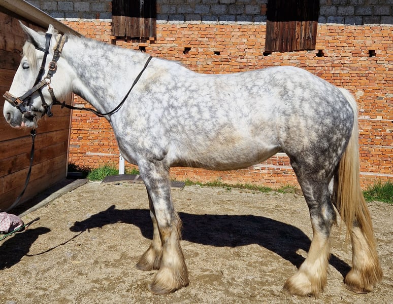 Dziękujemy za zainteresowanie naszą klaczą rasy Shire Horse Aurelia. Aurelia urodziła się w 2019 roku i ma obecnie około 1,80 metra wzrostu. Z pewnością stanie się wysoką klaczą, Shire zazwyczaj dorastają do wieku 9 lat. Ma pełne papiery od English Shire Horse Society. Ponadto Aurelia jest zarejestrowaną klaczą hodowlaną Shire Horse Society. Pochodzi z naszego programu hodowlanego i od początku dorastała z innymi źrebiętami, a później w mieszanym stadzie. Oboje rodzice charakteryzują się zrównoważonym i przyjaznym charakterem. Aurelia dorastała w stadzie i jest zaznajomiona zarówno z całodobowym pobytem na zewnątrz, jak i w boksie. Obecnie żyje w mieszanym stadzie wraz z końmi innych ras z codziennym, godzinnym wypasem, gdzie łatwo się integruje. Jest zorientowana na ludzi i ciekawska. Aurelia zachwyca przede wszystkim swoim pieszczotliwym charakterem. Uwielbia być głaskana godzinami. Niedawno zaczęliśmy ją trenować i jest zmotywowana i chętna do nauki. Wszystkie konie są przez nas delikatnie wprowadzane od 5 roku życia. Do tego wieku głównym celem jest podstawowe posłuszeństwo, praca naziemna i trening spokoju. Aurelia z pewnością stanie się wspaniałym koniem wierzchowym. Oczywiście ma wszystkie niezbędne szczepienia i jest regularnie odrobaczana i pokazywana kowalowi. Aurelia jest bezproblemowa zarówno u weterynarza, jak i u kowala. Nie ma też problemu z ciągnięciem jej na przyczepie. Jeśli jesteś zainteresowany, możesz ją poznać w dowolnym momencie, najlepiej skontaktować się z nami przez Whatsapp, aby uzyskać więcej informacji. Nasze zwierzęta trafiają tylko w najlepsze ręce i do domów odpowiednich dla ich wieku, dlatego ważne jest dla nas, aby poświęcić wystarczająco dużo czasu zainteresowanym stronom. Ważne jest dla nas również, aby koń miał wpływ na decyzję, ponieważ chemia musi być również odpowiednia dla naszych zwierząt. Chętnie zorganizujemy niezobowiązujące zapoznanie z Aurelią w ramach "Dnia lub Weekendu Konia Shire" na naszej farmie, abyśmy mogli poznać się w spokoju i bez stresu. Aurelia mieszka w pobliżu Bad Füssing. Chętnie zajmiemy się jazdą konną Aurelii. W tym czasie Aurelię można oczywiście odwiedzać i towarzyszyć jej w dowolnym momencie. Chętnie zorganizujemy również sesje z przyszłym właścicielem w dowolnym momencie, aby koń i jeździec mogli "rosnąć razem". Zakwaterowanie z doskonałym jedzeniem jest dostępne w odległości spaceru od naszej farmy. W bezpośrednim sąsiedztwie znajduje się również kilka pięknych uzdrowisk, więc krótkie wakacje w pobliżu nas są zdecydowanie warte zachodu. Nawet "nie-jeźdźcy" są tu bardzo mile widziani. Oferujemy również przejażdżki z przewodnikiem i wędrówki z naszymi łagodnymi gigantami w pięknym otoczeniu przyrody. Mniej doświadczeni jeźdźcy również mogą nam towarzyszyć, w takim przypadku koń jest prowadzony z ziemi. Dostępne są u nas również bony upominkowe, które były już miłą niespodzianką urodzinową. Więcej wrażeń na temat naszych koni można również znaleźć na naszym kanale Whatsapp. Jeśli jesteś zainteresowany, z przyjemnością prześlemy Ci link.