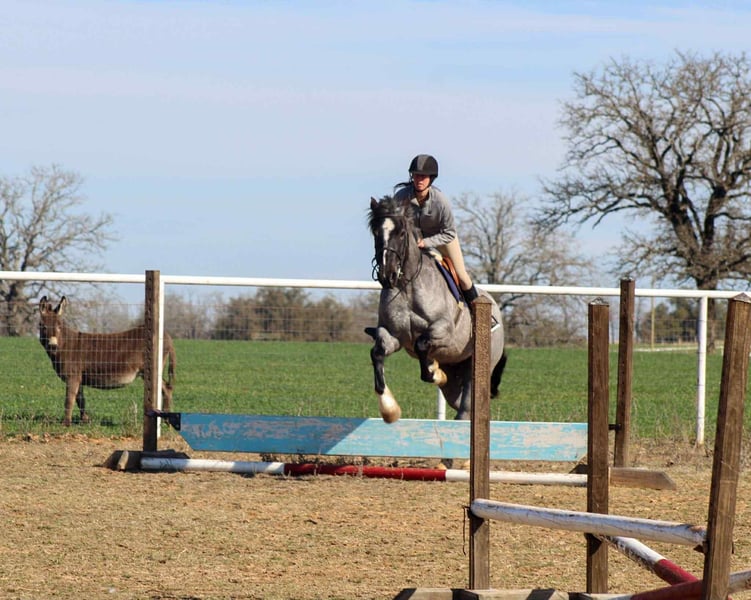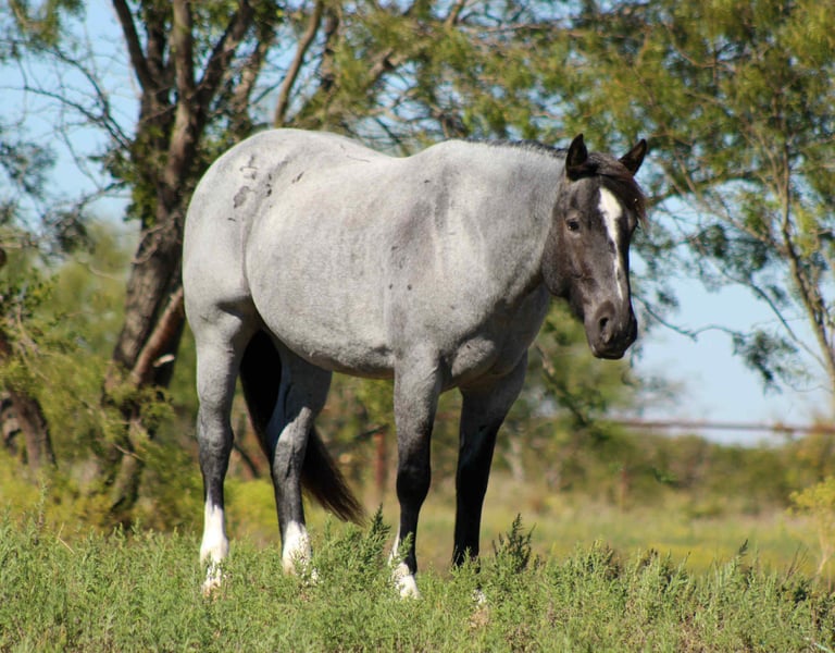 ONLINE AUCTION Place your bids at www.PlatinumEquineAuction.com Starting Bid $3500 Auction ends November 23rd, 2025 Need a new saddle? Check out White Rock Saddles on our website or Facebook There are good mares, there are pretty mares… and then there’s Blue Bell. A 2020 model registered Shire Sport Horse, this true blue roan draft cross mare stands 15.2 hands of pure presence. She’s the kind that makes you stop mid-sentence and stare — deep blue coat, big bone, and that quiet confidence that says she’s done a few things in her life. For the past two years, Blue Bell has been the get-it-done kind — penning cattle, loading trucks, checking fences, and sorting pairs. She’s seen a full day’s work and still walks back to the trailer with her ears up. She’s got the grit of a ranch horse and the grace of a show horse, wrapped in one stunning package. Don’t box her in, though — Blue Bell rides both English and Western, and she’s already started over jumps like she’s been doing it her whole life. She moves free and fancy, soft in the bridle, with a lope you could ride into the sunset. She’s been hauled to rodeos, ranches, and even the Fort Worth Stockyards, where she handled the traffic, wagons, and chaos like she was born for it. On the trails, she’s the steady lead horse everyone follows — crossing water, bridges, and brush without ever second-guessing her rider. In the arena, she’s a looker — low-headed, smooth, and stylish. She’ll walk, trot, and lope correct circles, has a big stop, and carries herself with pride. Blue Bell is sweet to her core — the first to meet you at the gate and the last to complain. She hauls, ties, stands for the farrier, and gets along anywhere you put her. This mare has talent, temperament, and tons of try. She’s the kind you can rope on in the morning, take to town in the afternoon, and ride English on Sunday. Blue Bell — because not all blue roans are created equal. We are open to anyone interested in her to schedule a time to come see her or if you can’t make it schedule a FaceTime showing to see her. If you need help with transport don’t hesitate to ask we have a list of reputable haulers that can get her safely to your doorstep WORLD WIDE including, Alaska , Mexico, Hawaii, Canada and anywhere in between from Stephenville, TX. Contact Michelle with M $ Performance Horses 661-817-9120 with any questions. ONLINE AUCTION Place your bids at www.PlatinumEquineAuction.com Starting Bid $3500 Auction ends November 23rd, 2025 Need a new saddle? Check out White Rock Saddles on our website or Facebook
