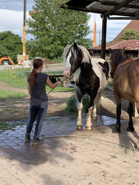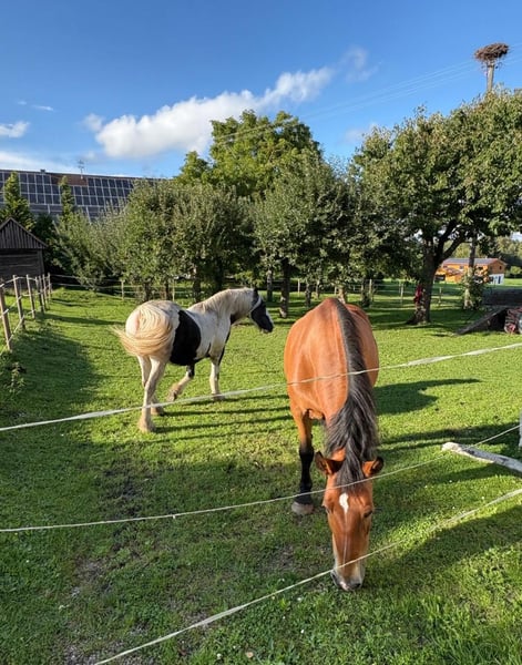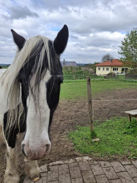 Reserviert bis 9.1.26 Wir verkaufen unsere zwei Freizeitpferde. Oskar Wallach Schecke schwarz/weis 161 cm Stockmass 17 Jahre alt. Luna Stute Braun mit schwarzer Mähne/Schweif 163 cm Stockmass 16 Jahre alt. Abgabe nur beide zusammen, Preis pro Pferd mit Zubehör (passende Freeform Sättel, Zaumzeuge, Reitpads, Decken und vieles mehr) Wir hatten die beiden Pferde 9 Jahre. Sie waren gesund und immer barhuf. Sie stehen bei uns immer im Offenstall 24 Stunden Heu und Koppeln. Unsere Jugendliche Kinder haben auf Ihnen reiten gelernt und wir waren immer zu Zweit im Gelände unterwegs mit Ihnen. Beide sind früher Kutsche gefahren daher auch strassentauglich. Momentan stehen Sie seit 1-2 Jahren nur noch bei uns am Hof, da die Kinder zum studieren ausgezogen sind und das reiten aufgegeben haben. Daher müssten die Pferde wieder üben, um das abzurufen was sie alles konnten. Sie sind sehr bezogen auf den Menschen und kennen Hunde, Hühner, Ponys, Esel das war nie ein Problem auch die Enkelkinder sind schon drauf gewesen. Sie beißen nicht und schlagen nicht aus. Hufpflege immer alle 8 Wochen und geimpft sind Sie auch. Videos vom longieren auf Anfrage