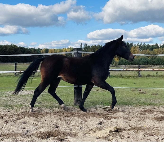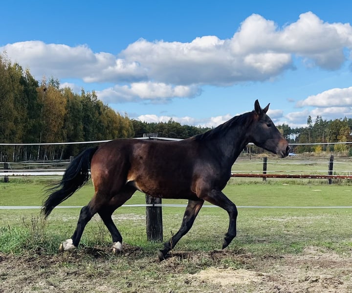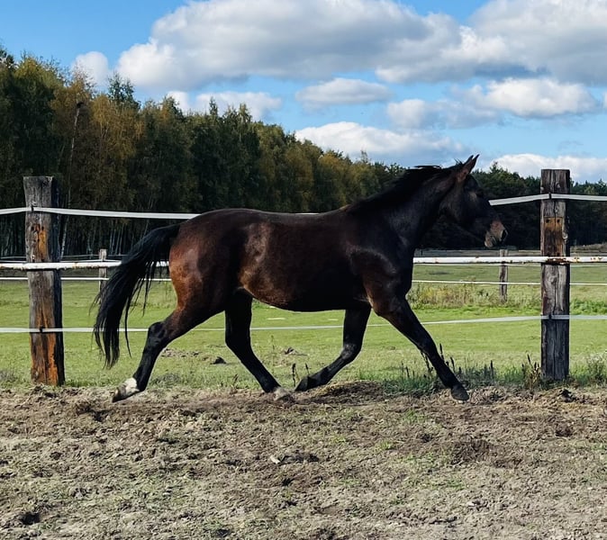 For sale: a beautiful Silesian mare! Daughter of the stallion Luby. Born in 2023, dark bay, standing at 16.2 hh. Ideal for breeding and recreational riding. Gentle temperament. Please feel free to contact us and arrange a viewing!