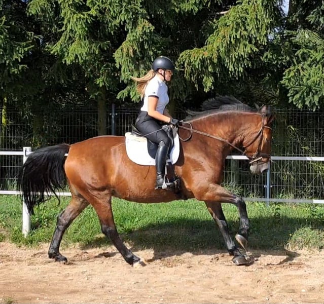 Victoria- Schlesier Stute mit Vollabstammung und Hauptzuchtbuch 7 j.a. 1,68m. Sie ist eine wunderschöne schlesische Stute, geboren im Jahr 2018. Mit ihrem eleganten Brauner-Fell und einem Stockmaß von 168 cm ist sie nicht nur ein Blickfang, sondern auch ein nettes Dressurpferd. Sie is auch Kinder geeignet nd absolut unerschrocken on Gelände. Sie geht auch in der Kutsche. Diese Stute zeichnet sich durch ihre freundliche und aufgeschlossene Art aus. Sie ist gut erzogen, brav im Umgang, kennt Hunde und Katzen. Ihre Bewegungen sind geschmeidig und ausdrucksstark. Tolles Freizeitpferd. Die Stute ist gesund, barhuf und Herdenverträglich. Bei Interesse oder weiteren Fragen stehe ich gerne zur Verfügung. Besichtigungen und Probereiten sind nach Absprache möglich. Standort nähe Görlitz.