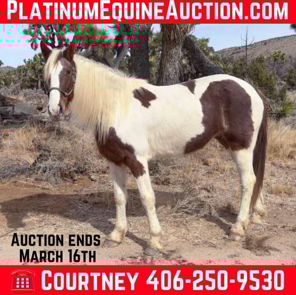 ONLINE AUCTION Place your bids at www.PlatinumEquineAuction.com Starting Bid $3500 Auction ends March 16th, 2025 Need a new saddle? Check out White Rock Saddles on our website or Facebook! Meet Ursa! (Registered with the SSHBEA as Dixie Diva) Ursa is a stunning sorrel tobiano, 8 year old, gaited Spotted Saddle Horse mare that is both beautiful and smart. She proudly stands 16h and is BIG and FLASHY, her long thick mane and tail attracting attention wherever she goes. Easy to catch, Ursa enjoys being groomed and doted on and will stand tied patiently for as long as you’d like. She gives her feet with ease, stands quietly for the farrier and doesn’t mind being saddled at all. She stands solid at the mounting block and doesn’t walk off when mounted. Ursa glides in both her flat walk and show gait – she can ride in the arena and has covered trails from the south east to the west coast. She loads and unloads with confidence in new places. She is alert and curious and has loads of personality – she could be the next great addition to your family! Call Courtney with Thunderbird Ranch at 406.250.9530 with any questions. Located in Pioneertown, CA. ONLINE AUCTION Place your bids at www.PlatinumEquineAuction.com Starting Bid $3500 Auction ends March 16th, 2025 Need a new saddle? Check out White Rock Saddles on our website or Facebook!