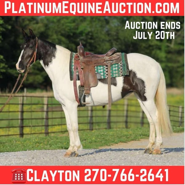 ONLINE AUCTION Place your bids at www.PlatinumEquineAuction.com Starting Bid $3500 Auction ends July 20th 2025 Need a new saddle? Check out White Rock Saddles on our website or Facebook Here is one for ANYONE to ride!! Chloe stands 14.3 hands tall and she is 13 years old! She is the most natural gaited horse I have ever ridden! She is a complete machine! Take her in the show ring or enjoy her on the trails! She is AWESOME on the trails she will cross anything with no hesitation!! She loves the water and just enjoys being ridden and loved on! She is good size to where she is easy to get on and off! She will neck rein like a quarter horse and she will go as fast as you’d like to go, or she will just walk nice and easy down the trails! We have taken her on over night camping trips, ridden her all over our farm around cows and other horses, and we have hauled her around everywhere to various trail riding spots! If you want one that is EASY to ride and get along with then here is your horse! She is easy going and is a BLAST to ride! She is sound and sane and she is located in Sonora Ky! Call Clayton Ryan 270-766-2641 with any questions you may have! ONLINE AUCTION Place your bids at www.PlatinumEquineAuction.com Starting Bid $3500 Auction ends July 20th 2025 Need a new saddle? Check out White Rock Saddles on our website or Facebook