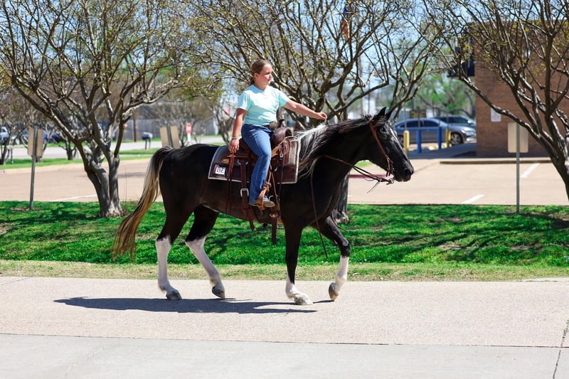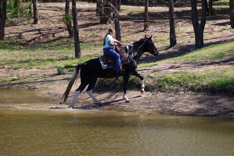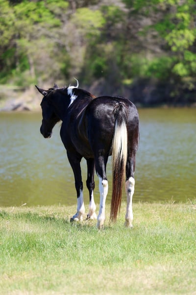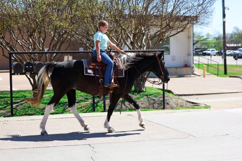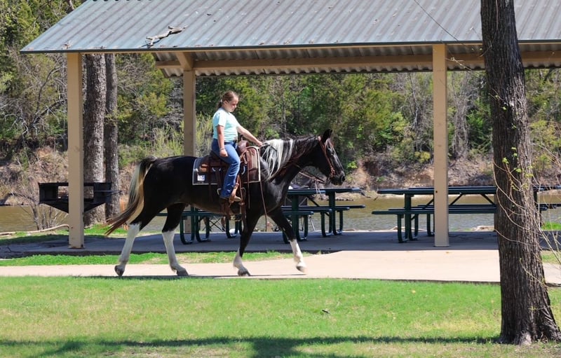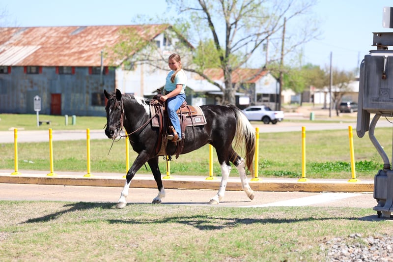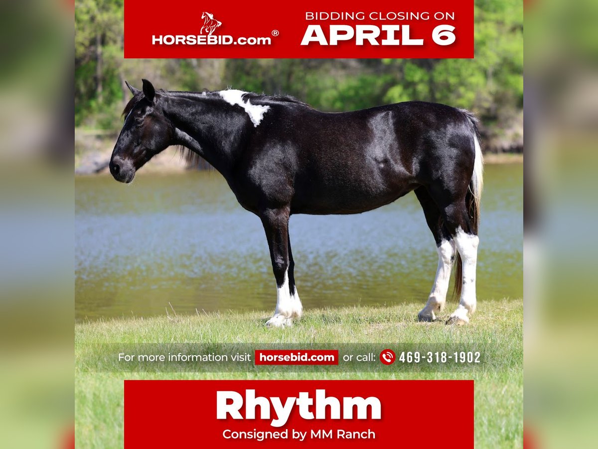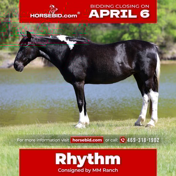 🌟𝑨𝒑𝒓𝒊𝒍 𝐀𝐋𝐋 𝐒𝐓𝐀𝐑 𝐋𝐈𝐍𝐄𝐔𝐏🌟 Happening now thru MONDAY | APRIL 6th - Available EXCLUSIVELY on HorseBid's website! For more details and to register visit: www.Horsebid.com CONSIGNOR CONTACT: MM Ranch 469-318-1902 LOCATION: Forney, TX BREED: Spotted Saddle REGISTERED: No COLOR: Paint HEIGHT: 15 AGE: 14 GENDER: Mare 🎶🎶Get Rhythm when you get the blues. Get a rock and’ roll feeling in your bones. Put taps on your toes and get goin. Get rhythm when you get the blues. A jumpy rhythm makes you feel so fine. It’ll shake all your trouble from your worried mind. Get rhythm when you get the blues. It does a million dollars worth of good for you!!! 🎶🎶 🎵We are proud to offer our sweet Rhythm girl. We will have you singing Johnny Cash “Get a Rhythm” as you ride her down the road. She definitely has the all rhythm and all the style to travel on the down the road. 🎵Rhythm is a good honest all around trail horse!! She is the kind that is bombproof and safe for absolutely anyone to ride. She is kid tested and grandparents approved. She has been rode by ages 4 yrs old to 85 yrs old. She is a been there done that type. A true well seasoned horse with thousands of miles under her belt. She is the perfect size of 15 hands tall. Not too big not too small! And she is the perfect age of 14 yrs old. (Vet confirmed on age). 🎵Rhythm is a spotted saddle bred horse (a type of gaited horse). If you don't know about the breed I encourage you to look them up. It's not a prancy or hyper gait. Not quick. It's a natural more laid back gentle gait. She will walk or kick her up to her gait. She will go both slow or fast in her gait as well. All the time on a loose rein. You don't have to fight her or constantly pull her back. You just set the speed to your liking. She is super easy to get gaiting but as soon as you are done she will drop right back down into a walk. It's kinda of liking putting your car on curse control. She will do the rest. She is a super smoooooth ride!!!! And oh so easy and fun. If you have back or hip issues and need a comfortable ride this is her. 🎵Rhythm is a trail rider's dream horse. She is a true lady to be around on the ground. She absolutely loves the kids. She is a very well mannered girl. She stands tied at the trailer, stands for farrier, vet, and bathes well. She stalls well, and enjoys turn out time. She gets along with other horses well. She is a very easy keeper. Rhythm will cross whatever you come to water, bridges, deadfall, wildlife, and traffic. She loves water. We have been through rocky terrain, had her around gunfire, fireworks, tarps, city lights, and cattle, all of which she has handled very well. You cannot rattle her or stir her up. She is a seasoned pro. She has a true one hand neck rein, and is very light in the mouth. She backs up with ease. She rides out alone just fine. Not at all buddy sour or herd soured. Not at all hyper. I can't stress that enough. Other gaited I have been around seem to want to go all the time. That is not her. She will gait when told to then walk the rest of the time. You wouldn't even know she was gaited till you speed her up. Yes she will lope too. 🎵We have used her to check our cattle. Yes surprisingly she likes being around cattle and likes being used around the ranch. We have took her on many mountain rides through all types of terrain. She is a seasoned real deal trail horse. We have let the kids ride her through town. Absolutely nothing fazes this girl. Not at all spooky or watchy. No bad habits at all. Absolutely no buck or silliness when riding her. We never have to warm her up or tune her up before we take her on a ride. Even if we have went 3-6 month without riding her. We can catch her fresh out on the pasture and go. 🎵Rhythm is a super easy keeper. Requires no maintenance of any kind. She can go barefoot or put shoes on her. We do keep her barefoot. She has excellent good hard feet. So would only need shoes if going on a long mountain trip. You can stall her or turn her out. Doesn't matter to her. She is easy. PLUS she sells 100% sounds with no health issues at all. She did have a pre vet evaluation done included in the pictures. If you have anymore questions about her feel free to call. We would love to visit with you about her. We can help you arrange shipping anywhere. She is up to date on all vaccinations, worming, had her teeth checked, feet. She is ready to go to her new home.