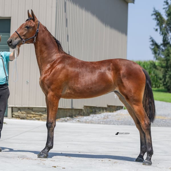 This brown Standardbred mare is an excellent prospect for someone looking for a young horse with natural athleticism and endless energy. "Lady Ann" was born June 6, 2024, stands 14.2 hands at just over a year old and shows an awesome floating trot that makes her exciting to watch. Her calm temperament (rated 3/10) gives her the gentle nature that makes her easy to handle while maintaining the spirit that makes training rewarding. Lady Ann carries Illinois state-bred bloodlines with USTA registration (#25Po7) and thrives as an easy keeper who needs minimal care. She's halter broke and ready to begin her education in racing, riding, or driving. This mare offers proven Standardbred genetics with natural movement and energy to excel in multiple disciplines. Lady Ann is located at Welsh Mountain Farm in Narvon, PA. Shipping Notes Call for shipping quote. We deliver anywhere.