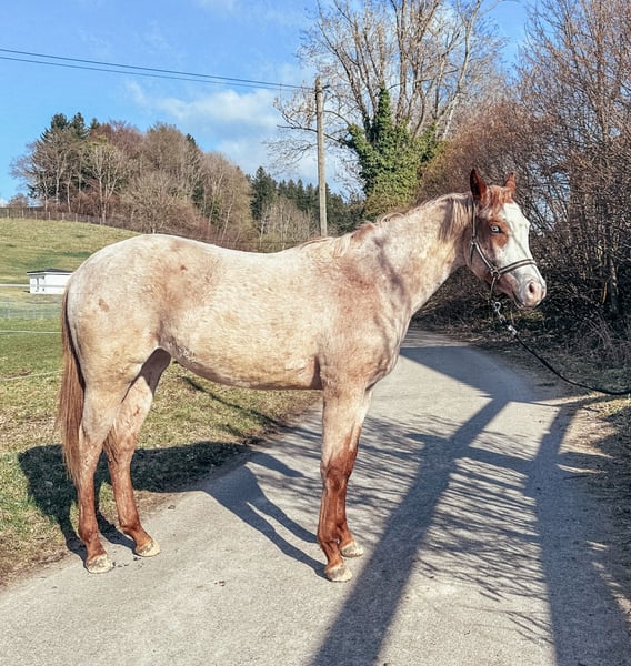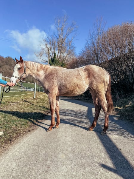Esta hermosa potra joven impresiona no solo por su tipo y expresión, sino también por sus movimientos sobresalientes y elásticos. Tiene el potencial para destacar en las grandes exhibiciones. Abbey crece en un grupo de yeguas con amplios paddocks y actualmente se está manejando de manera suave y adecuada a su edad para su entrenamiento en longe. Ya ha participado en una competición para propietarios en una exhibición de PHCG y, de potranca, fue premiada con una puntuación de 8,05 en la exposición de potros de PHCG en Stoßberg. ✅ Documentos AQHA y APHA ✅ busca un hogar de exhibición ✅ actualmente en entrenamiento suave en longe ✅ conoce el ABC de los potros ✅ tranquila con el herrador ✅ se deja lavar sin problemas ✅ tranquila en el remolque