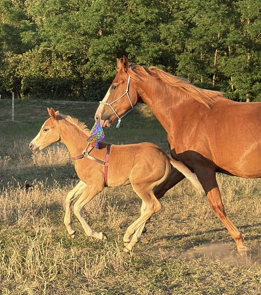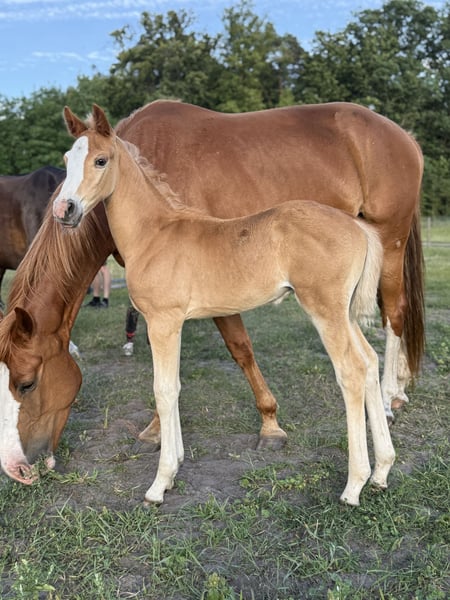 Verkaufsanzeige für ein Pferd Ich biete einen wunderschönen Hengst zum Verkauf an, der sicherlich die Aufmerksamkeit jedes Reiterliebhabers auf sich ziehen wird. **Details:** - Rasse: Anglo European Studbook - Geschlecht: Hengst - Geburtsjahr: 2025 - Farbe: Fuchs - Größe: Derzeit ca. 1,40 m, aber es verspricht, ein groß gewachsener Pferd von etwa 1,70 m zu werden - Fähigkeiten: Vielseitiges Pferd, zukünftig geeignet für Springen oder Vielseitigkeit Rocket Sky ist ein vielversprechendes junges Pferd, das sich durch seine einfache Handhabung auszeichnet. Er kann am Führstrick geführt werden. Er hebt die Beine, wurde bereits vom Hufschmied behandelt und fährt problemlos in den Hänger. Er ist gegen alle möglichen Abschreckungsmittel allergisch. Er besitzt einen wunderbaren Charakter und arbeitet gerne mit Menschen zusammen. Seit seiner Geburt lebt er auf der Weide in einer ausgeglichenen Herde. Die Mutter kann vor Ort besichtigt werden. Ich lade Sie herzlich ein, Kontakt aufzunehmen, um weitere Informationen zu erhalten und einen Termin zu vereinbaren. Dies ist eine ausgezeichnete Gelegenheit, Eigentümer dieses charmanten Hengstes zu werden!