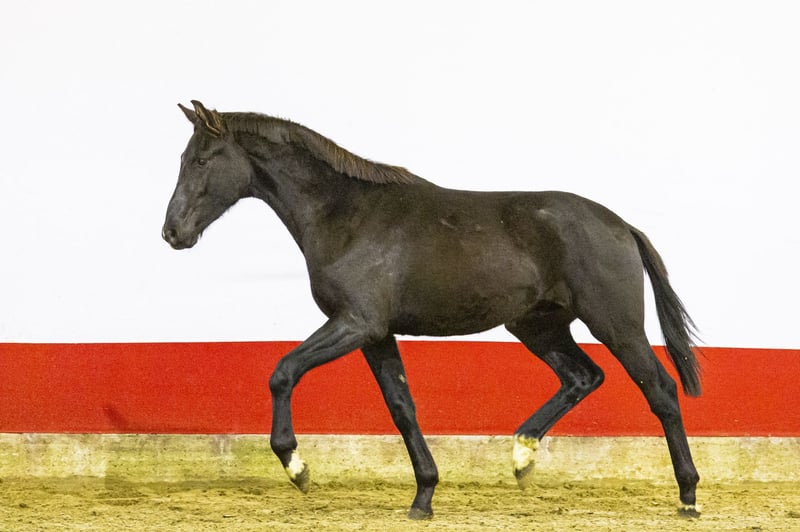 Dressurpferde sind in unserer Sammlung eher selten vertreten, doch gelegentlich unterstützen wir Züchter beim Verkauf eines vielversprechenden Nachwuchspferdes. Uncle William M ist ein solches Beispiel. Dieser dunkelbraune zweijährige Hengst hat bei uns einen sehr positiven Eindruck hinterlassen. Er wirkt leichtfüßig, bewegt sich mühelos und zeigt alles mit großer Leichtigkeit. Er besitzt eine gute Präsenz und Front, verbunden mit geschmeidigem und ausgeglichenem Bewegungsablauf. In seinem Gang zeigt er, dass er seinen Körper gut nutzt und über natürliches Talent verfügt. Ein sehr interessanter Nachwuchsstarter für den Dressurenthusiasten. Vater Willem Normandi ist ein Sohn von For Romance I und repräsentiert einen modernen Dressurtyp. For Romance I selbst erzielte Grand Prix-Ergebnisse bei internationalen Dressurturnieren in den USA und Großbritannien. Diese Stutenlinie ist bekannt für ihre Beweglichkeit, Rittigkeit und Präsenz – Eigenschaften, die auch bei Uncle William M deutlich sichtbar sind. Die Mutterlinie ist außergewöhnlich stark im Dressursport. Die Mutter Ge Noortje.W ist eine Tochter von Johnson, einem bewährten Grand Prix-Dressurhengst und führenden Zuchthengst auf höchstem Niveau. Die Großmutter Noortje (von Hofnar) war auf L3 in den USA sowie auf Advanced Medium in Großbritannien erfolgreich. Weiter in der Linie finden sich mehrere international erfolgreiche Dressurpferde, darunter Evaniel’s Blackie W, der auf Grand Prix-Niveau erfolgreich war, sowie mehrere Pferde auf PSG- und Inter I-Niveau. Diese Familie ist bekannt für ihre Rittigkeit, Mentalität und konstante Leistung im Dressursport. Uncle William M ist ein leichtfüßiger, korrekt gebauter zweijähriger Hengst mit einfacher Bewegungsführung und starkem Dressurblut. Ein äußerst vielversprechender Nachwuchs für den Dressurfan, der nach vorne blickt.