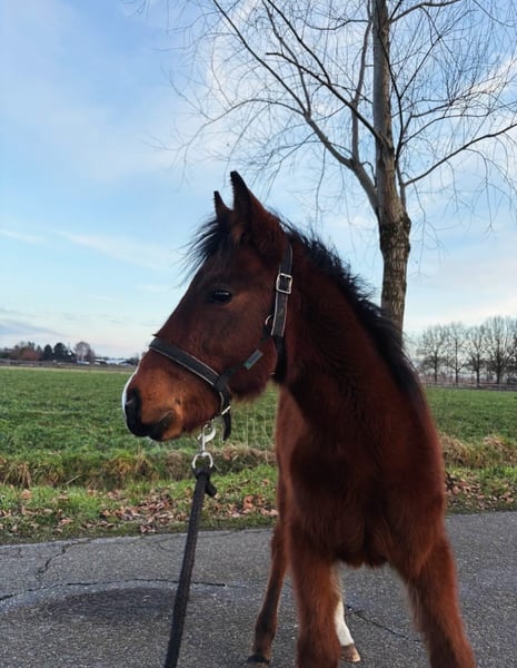 - Friendly with other horses - Always handled with care - Knows how to be groomed, to accept foot care, and to walk on a lead He needs a place where boundaries are clearly defined. Ideally, I would like to see him grow up with other foals. His mother is visible with us (he has been weaned for some time). The last photo shows his father (Lomansheide Hunter, a New Forest Pony). More information?: 0618798393